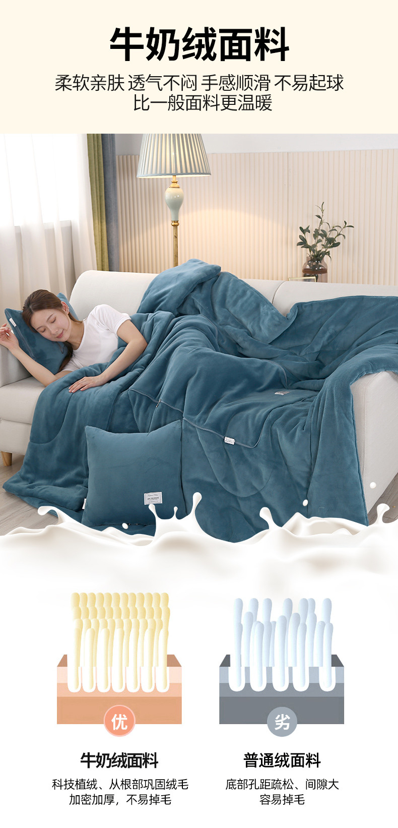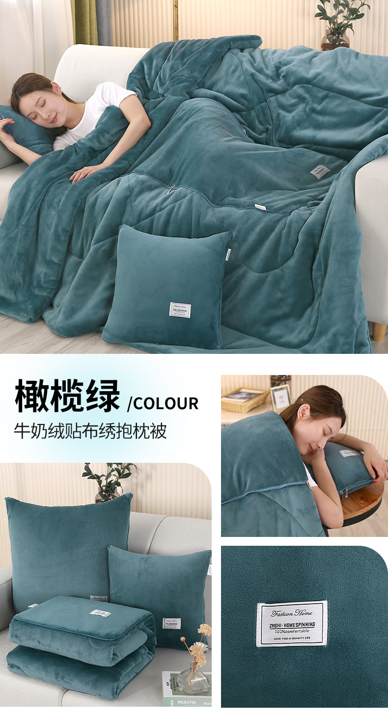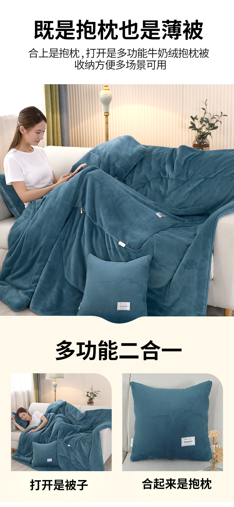 (总)照世家纺 2025新款牛奶绒简约复古款抱枕被,草绿,淡粉,千代紫,深灰,深蓝,天兰,香芋紫,杏粉