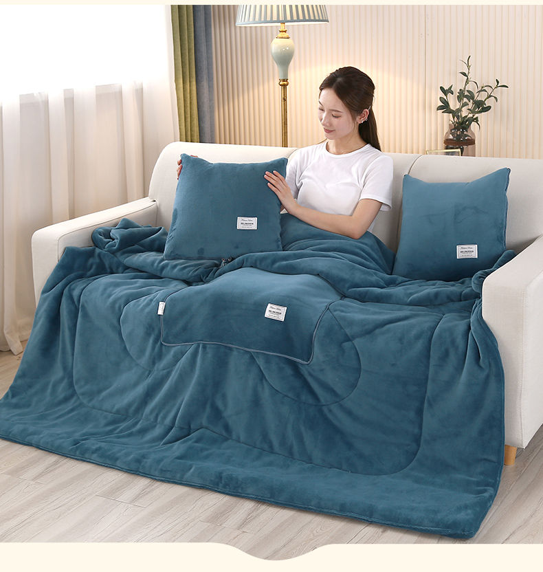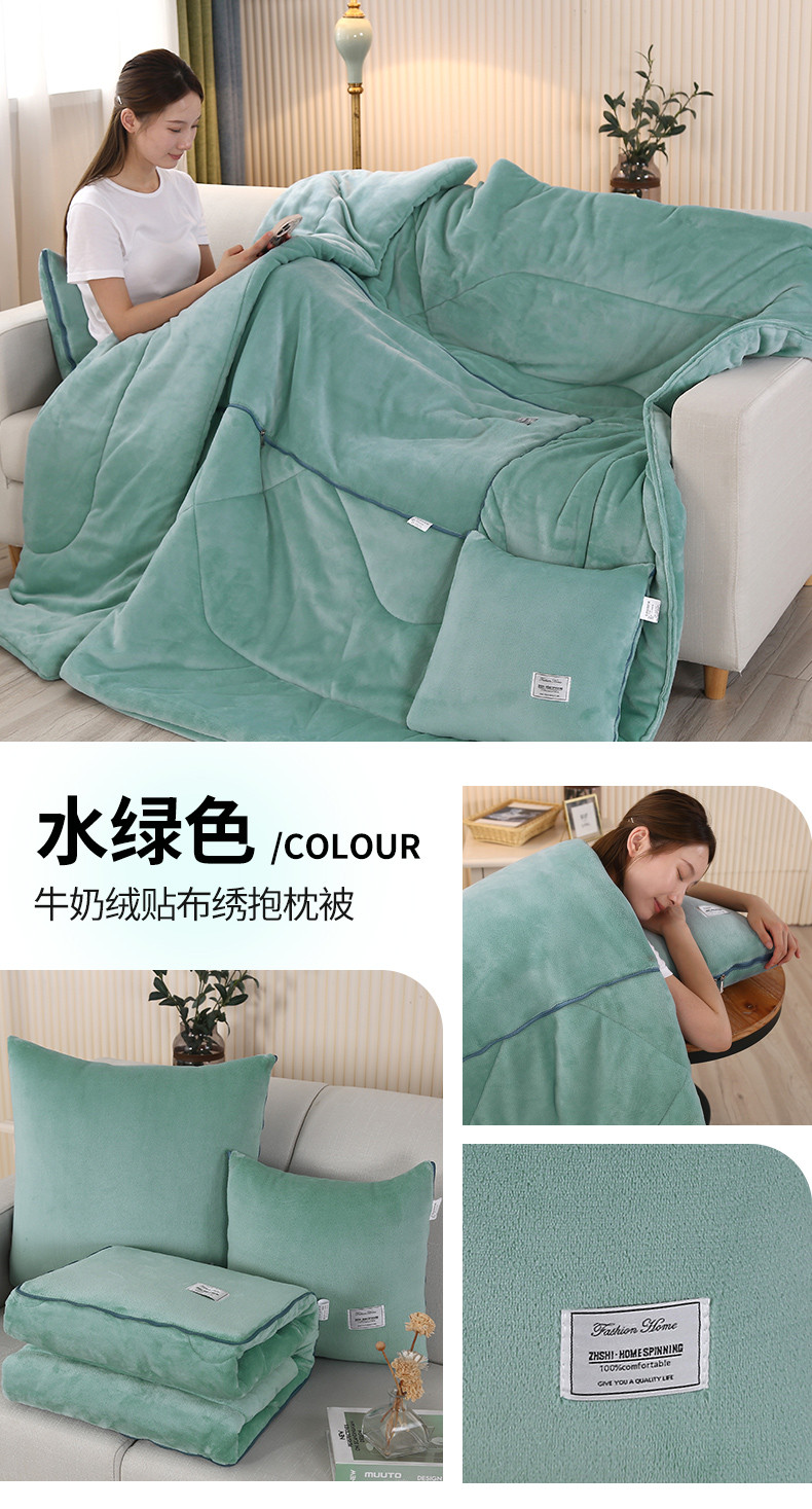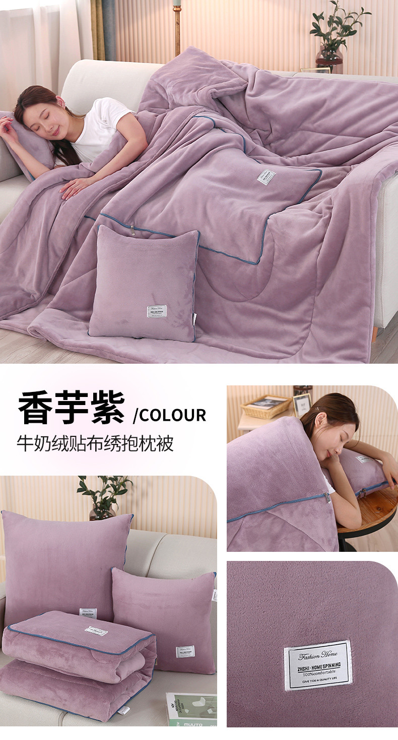 (总)照世家纺 2025新款牛奶绒简约复古款抱枕被,草绿,淡粉,千代紫,深灰,深蓝,天兰,香芋紫,杏粉