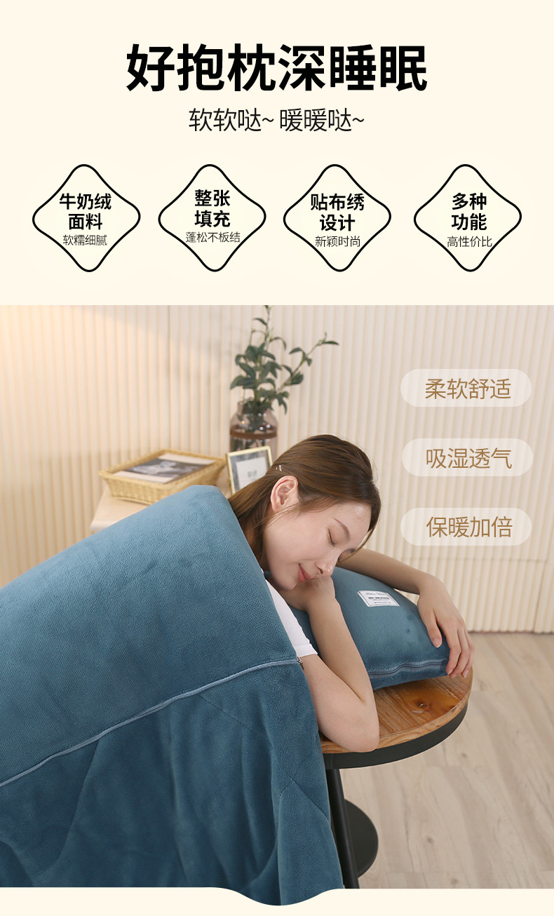 商品名称:(总)照世家纺 2024新款牛奶绒贴布绣抱枕被