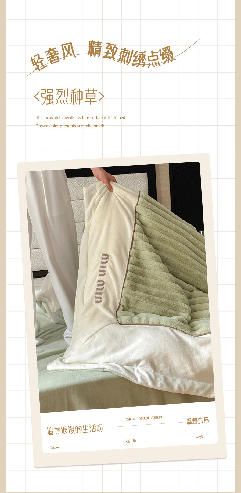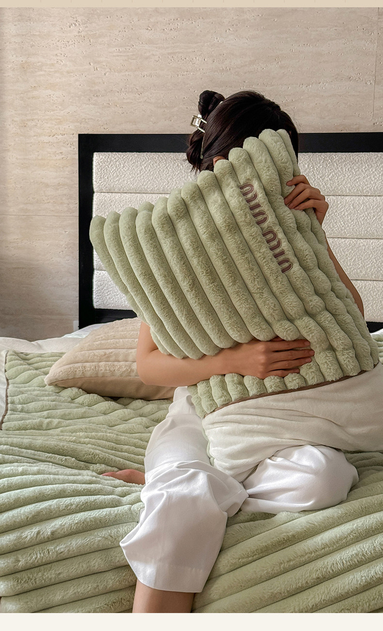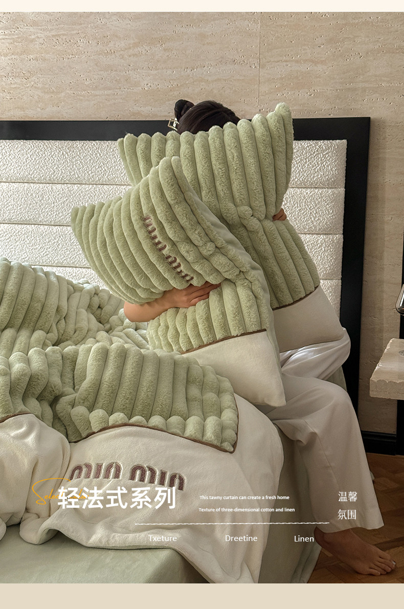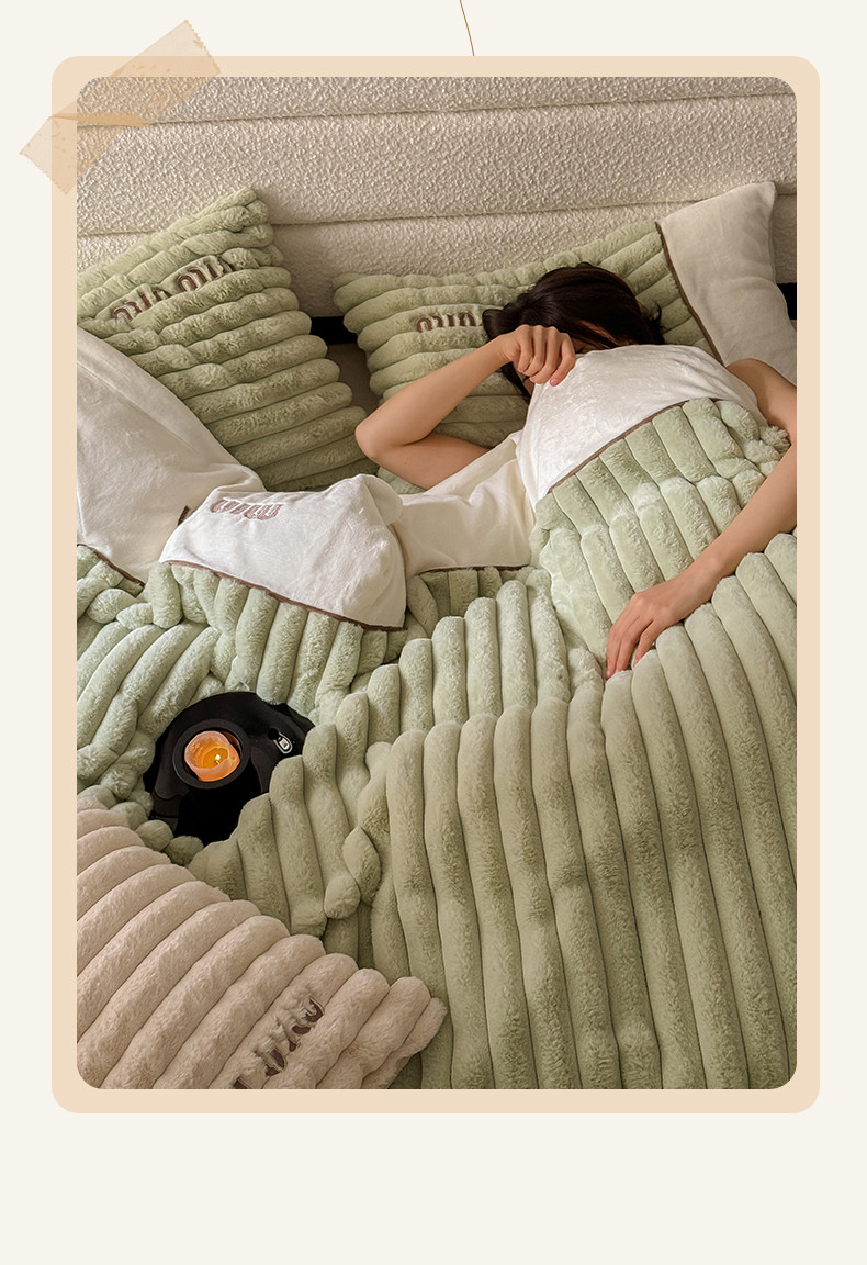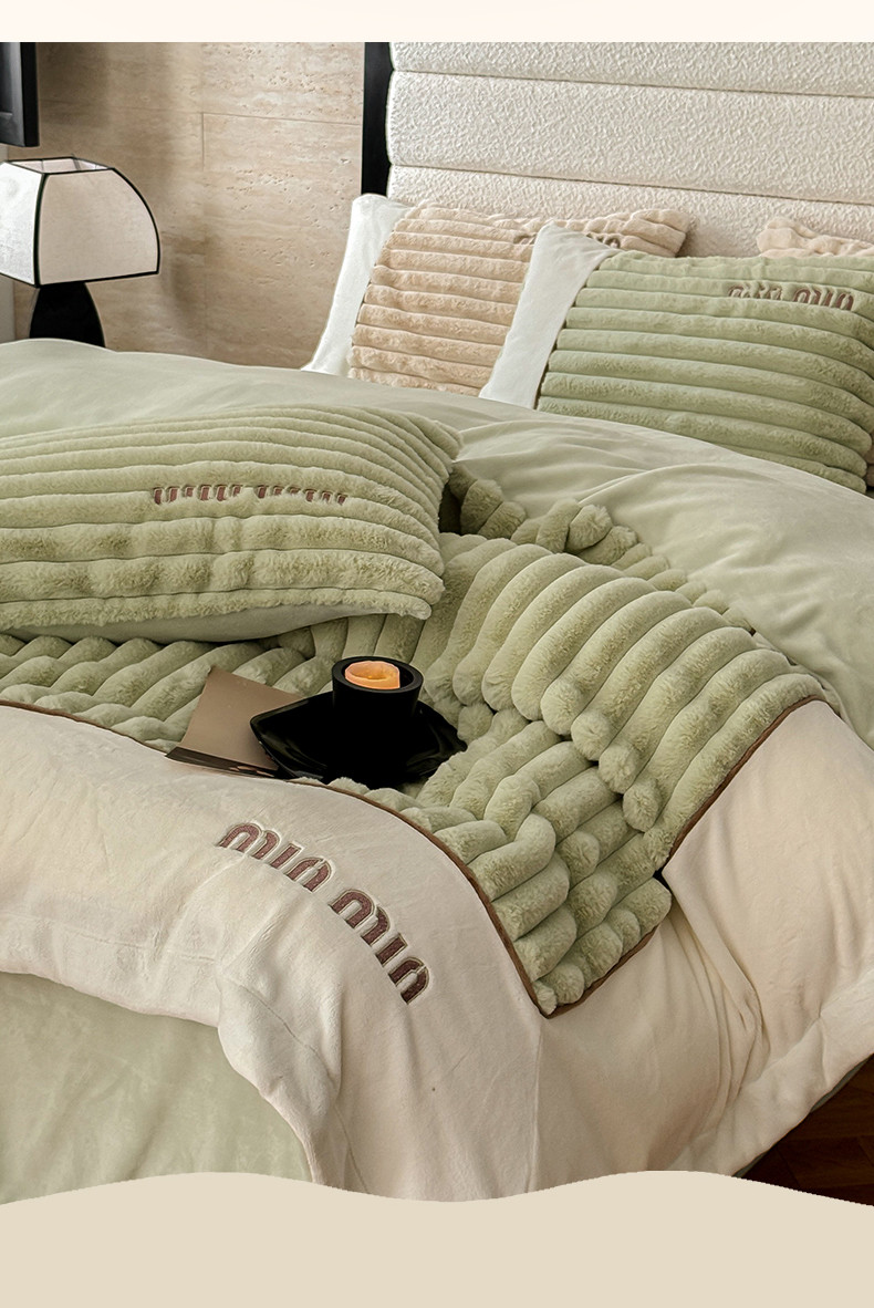 名品优仓 2024新款条纹兔绒拼绒边四件套-安露丝 安露丝-新芽绿