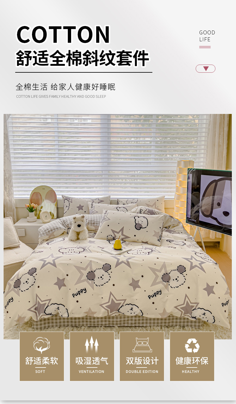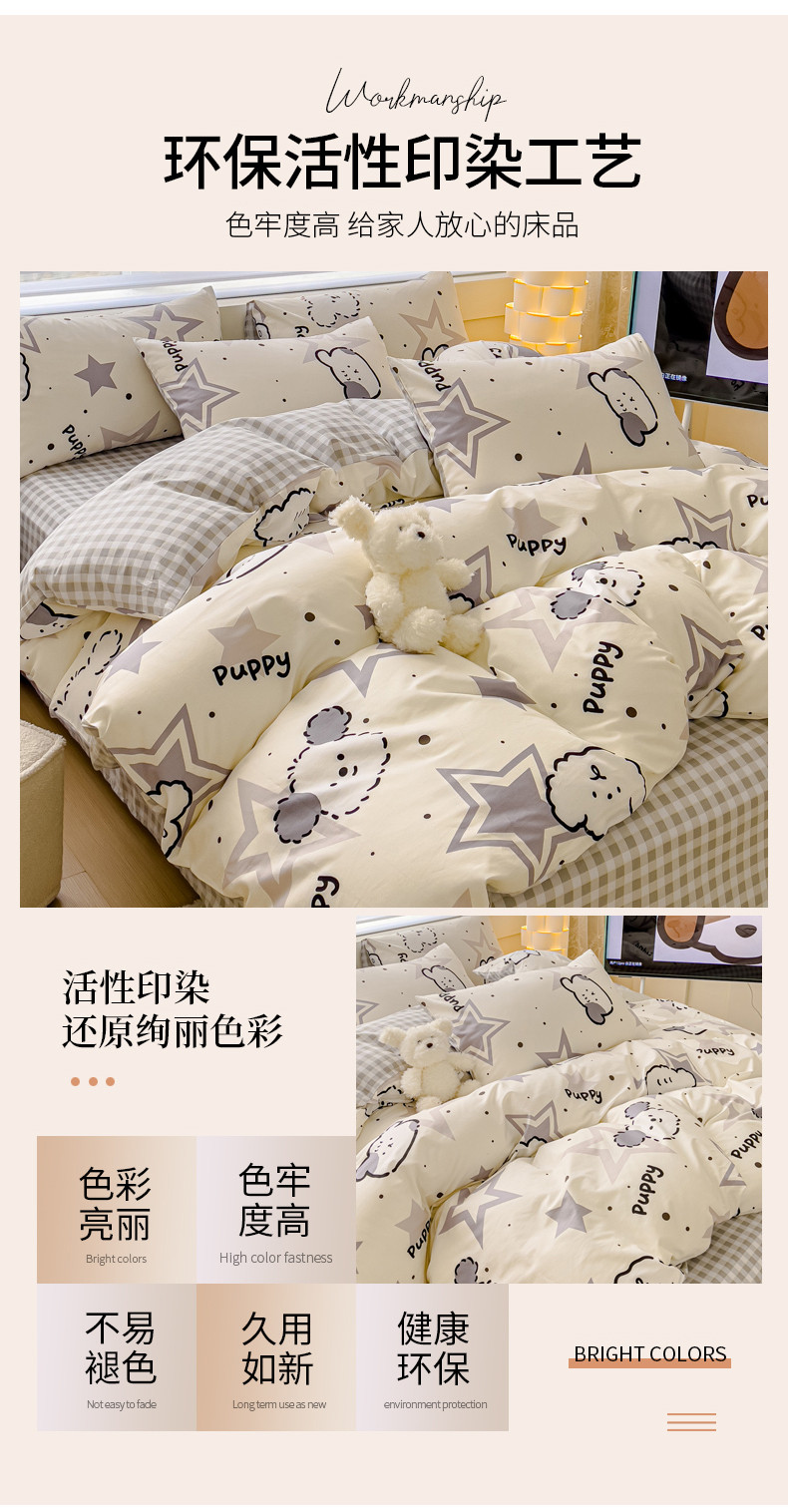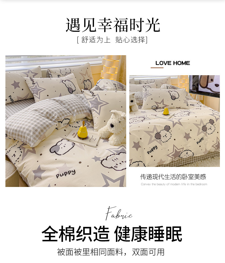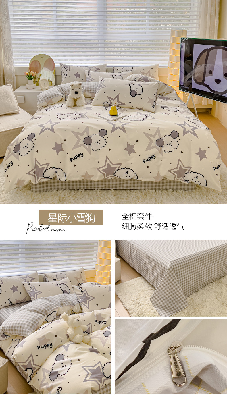 当前位置: 91家纺网 > 商品网购 > 床品套件 > 四件套 > 全棉普通四件套 > 金丝鸟 2024新款全棉可爱卡通四件套 星际小雪狗