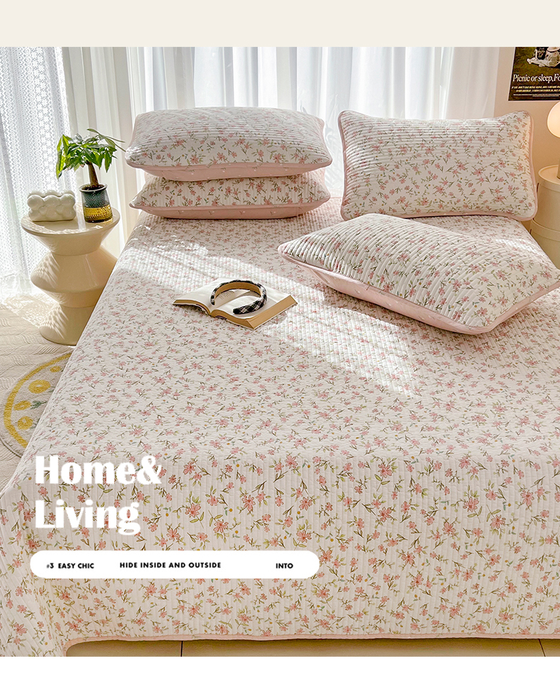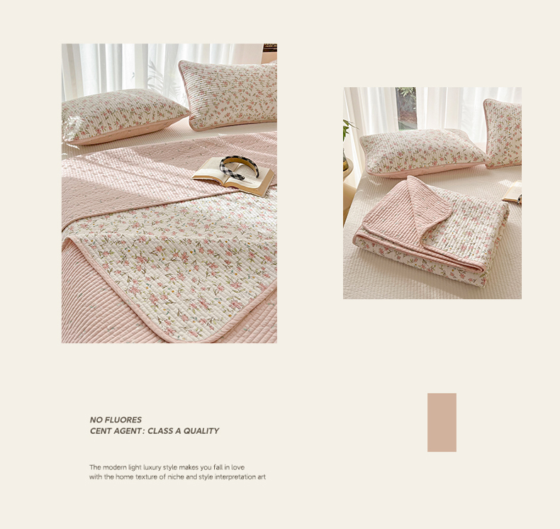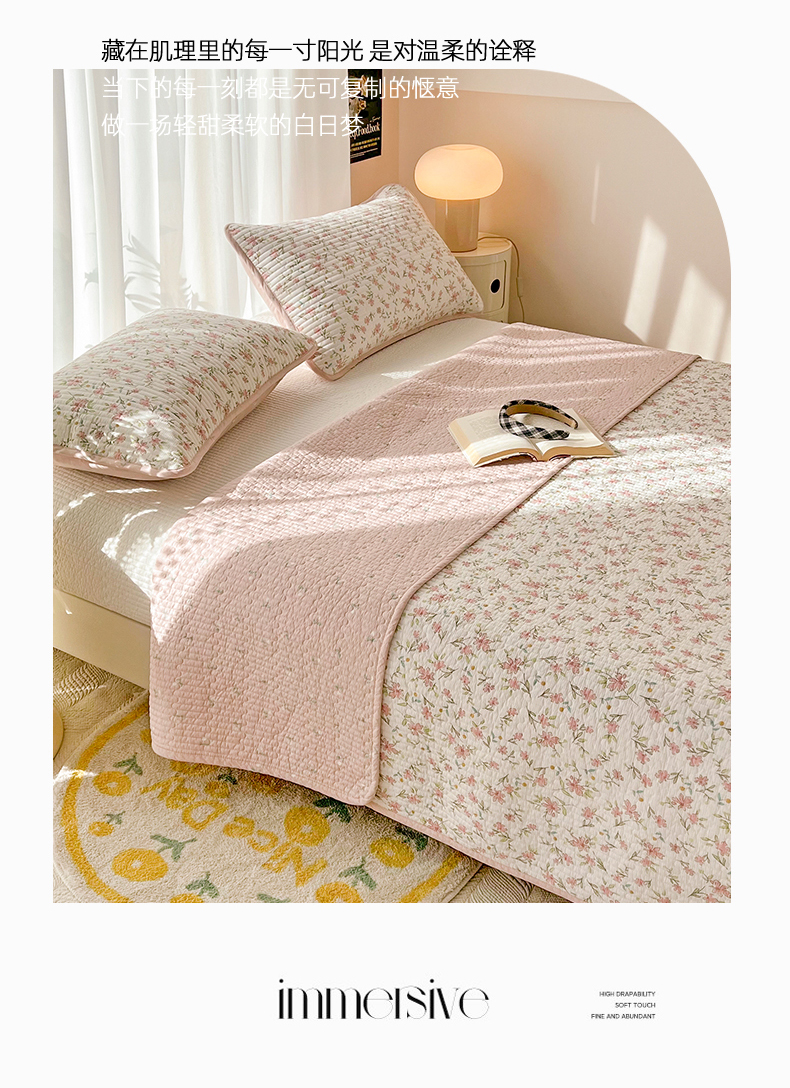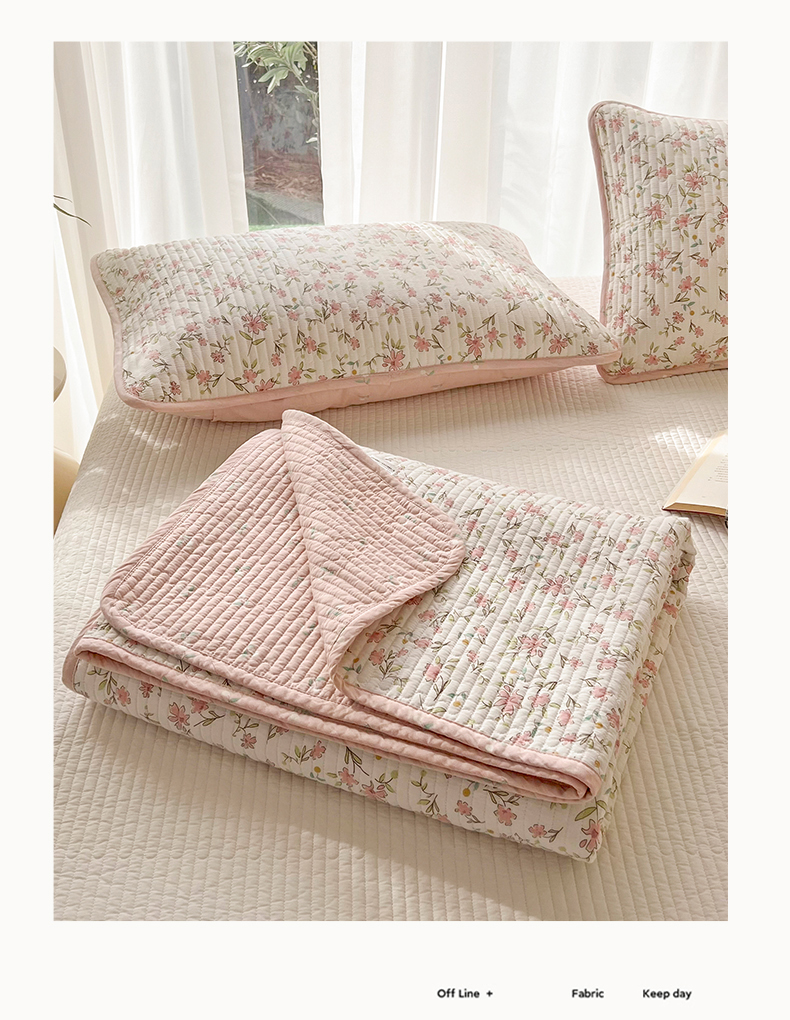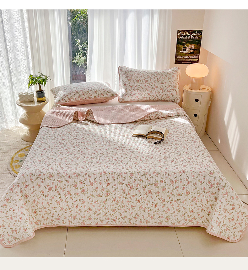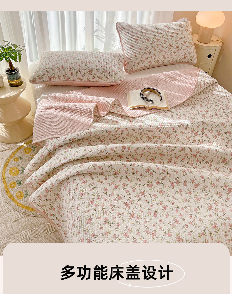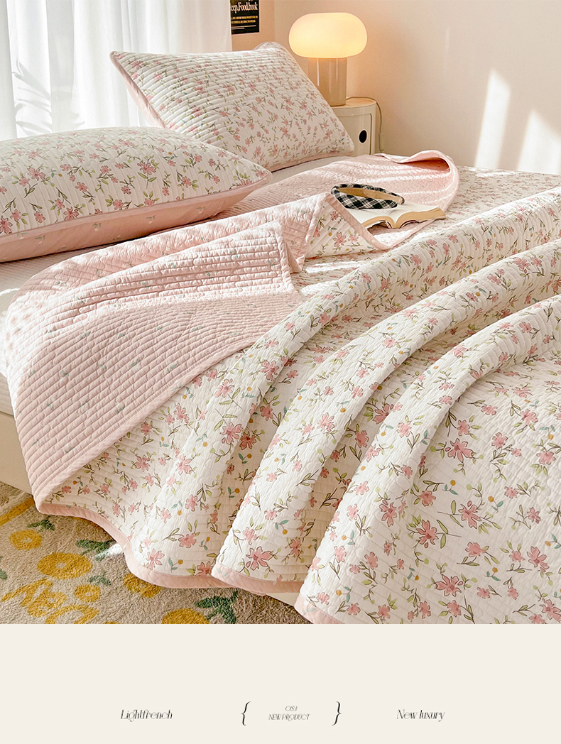 茉夕家纺 2024新款纯棉斜纹13372双面纯棉床盖 浪漫花丛