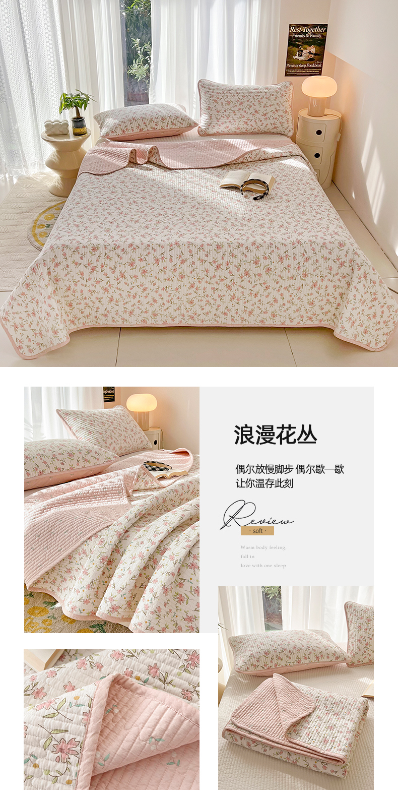 商品名称:茉夕家纺 2024新款纯棉斜纹13372双面纯棉床盖 浪漫花丛