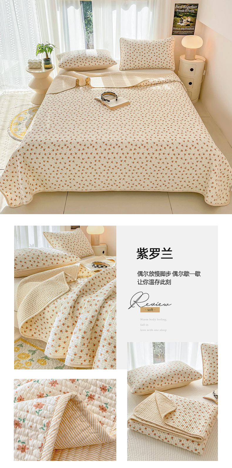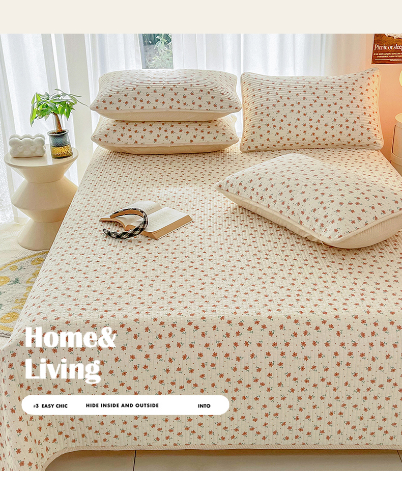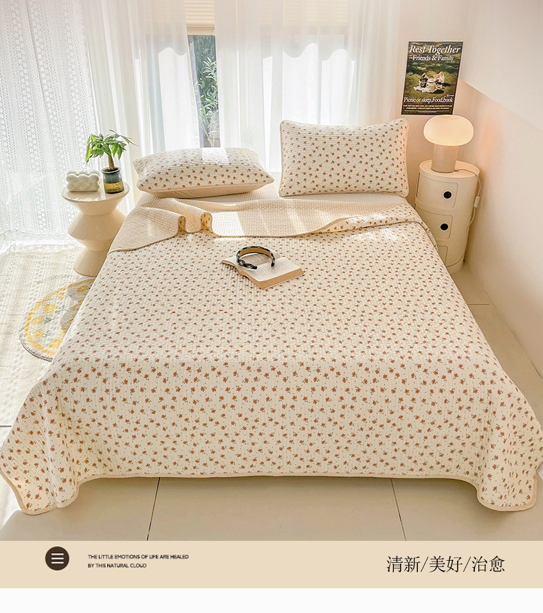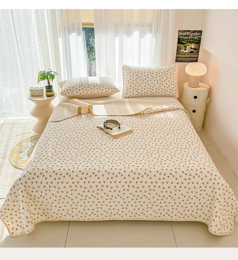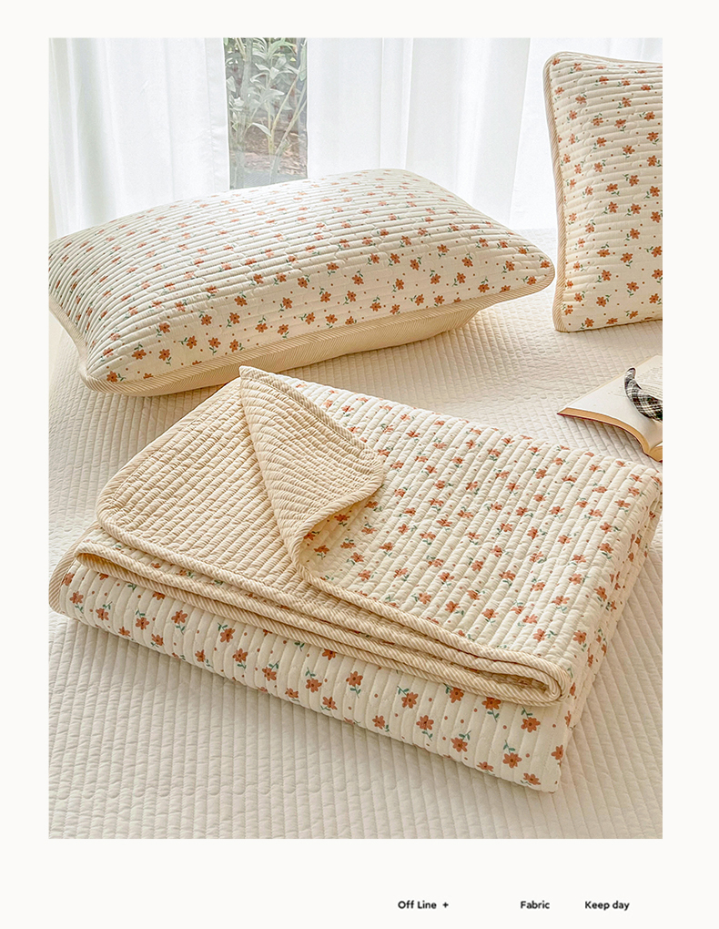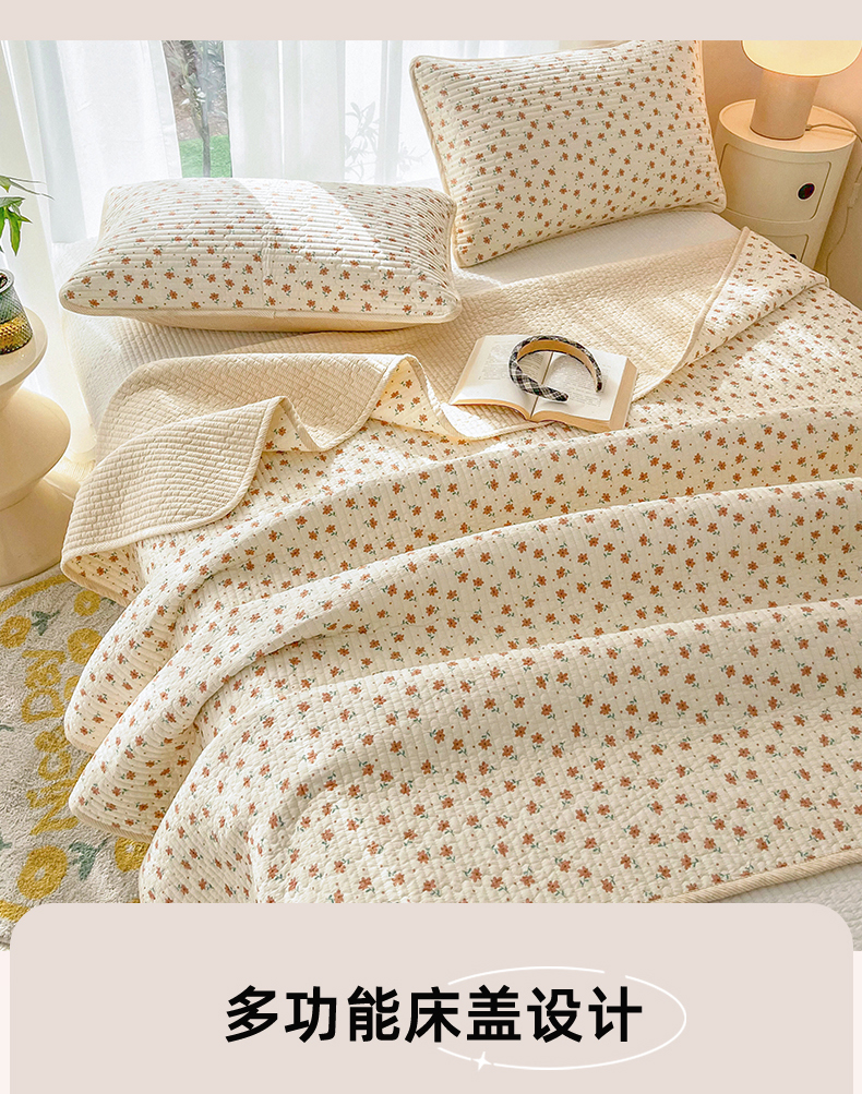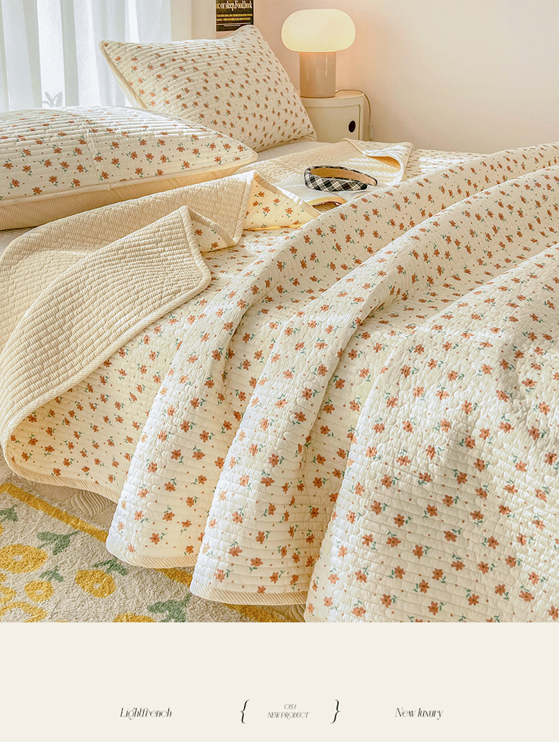 商品名称:茉夕家纺 2024新款纯棉斜纹13372双面纯棉床盖 小花飘飘