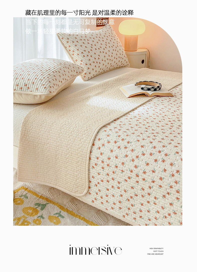 茉夕家纺 2024新款纯棉斜纹13372双面纯棉床盖 小花飘飘