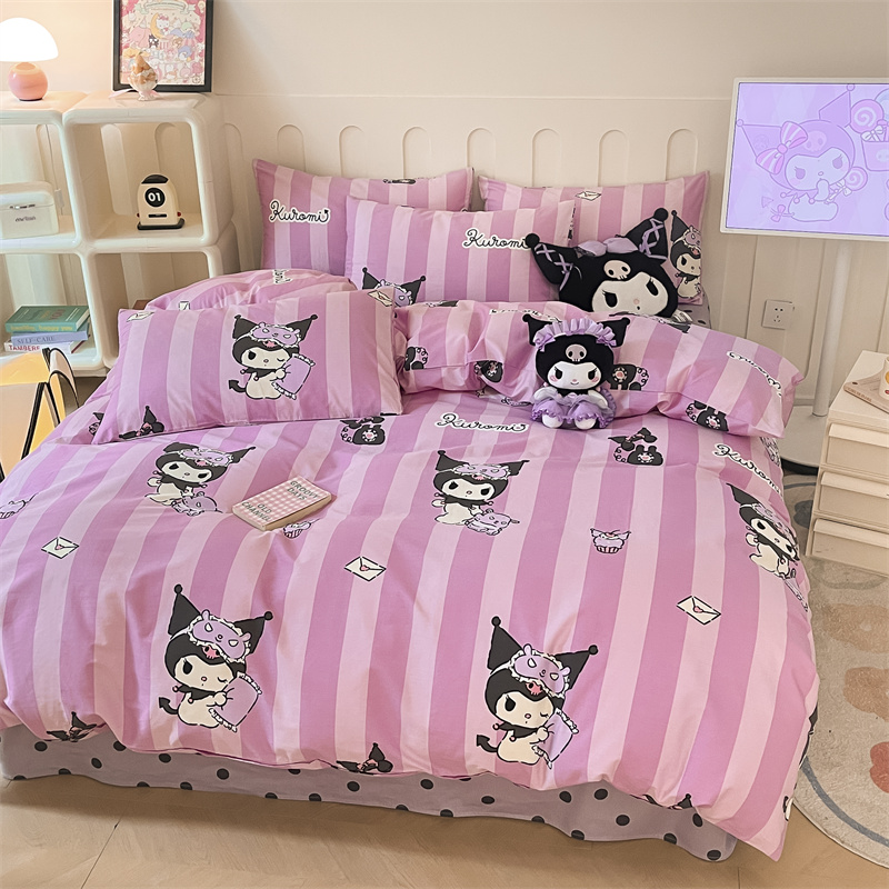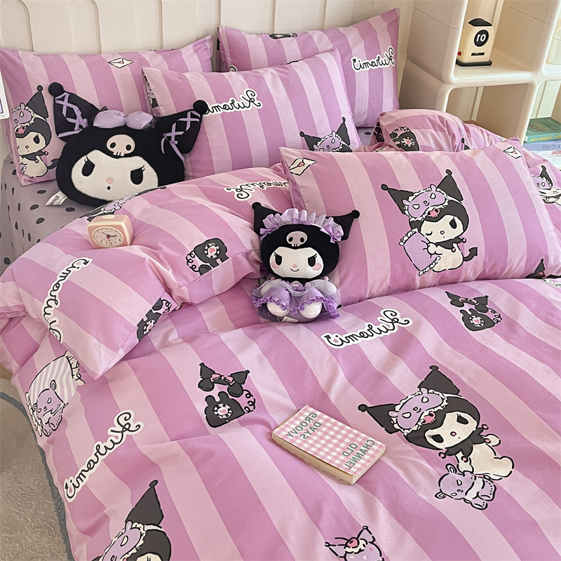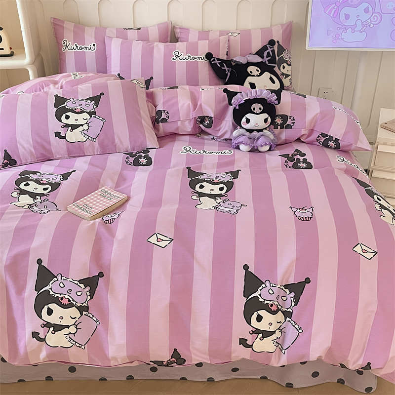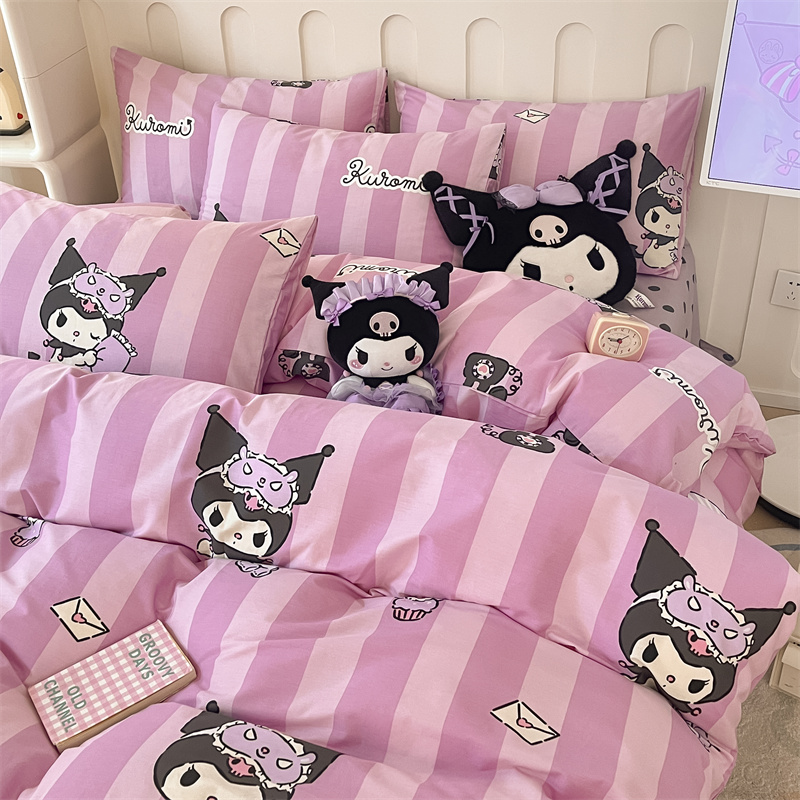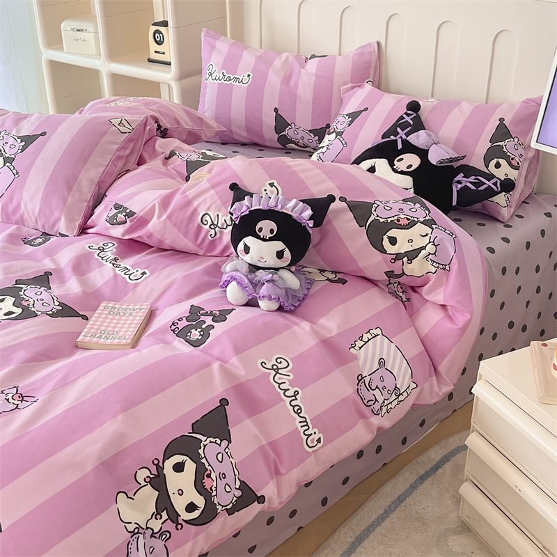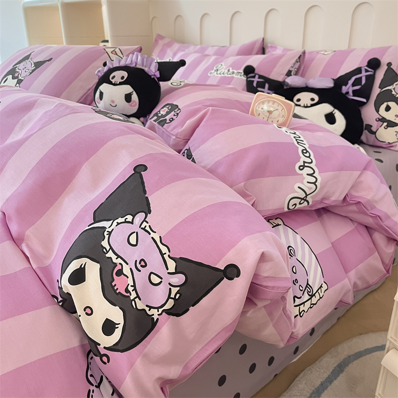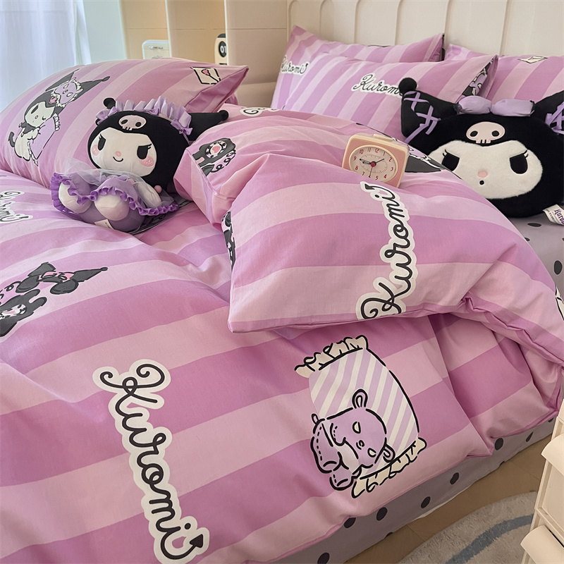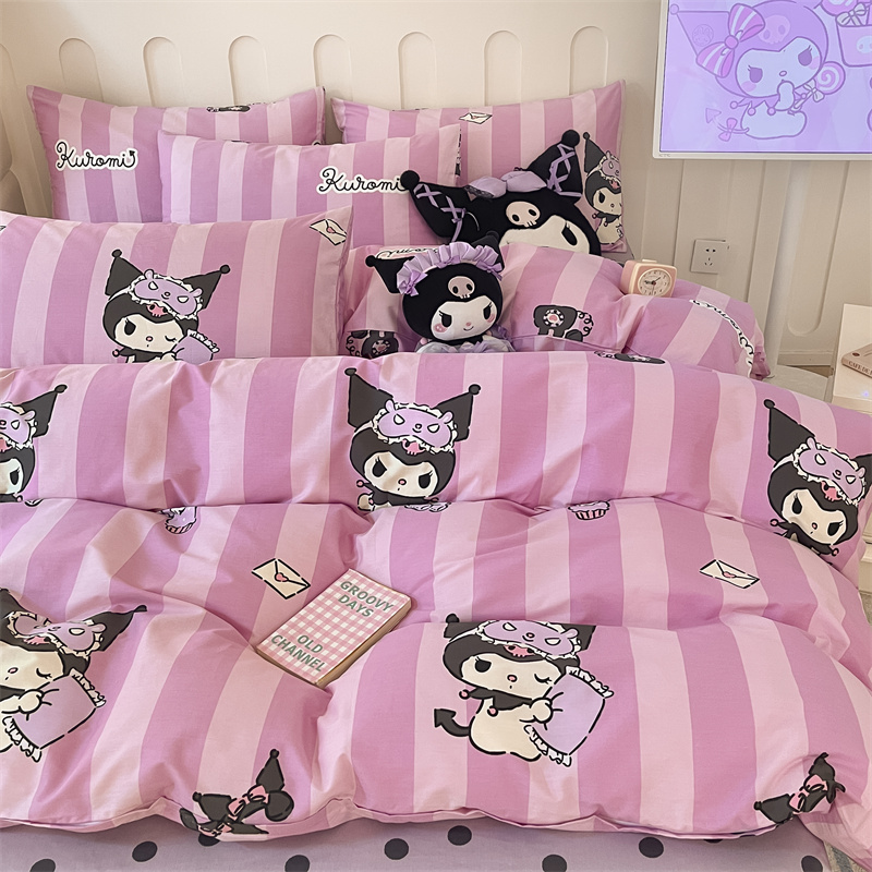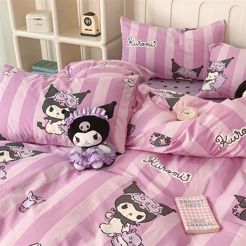 呗旺鹿 2024新款三丽鸥系列全棉四件套 竖条库洛米