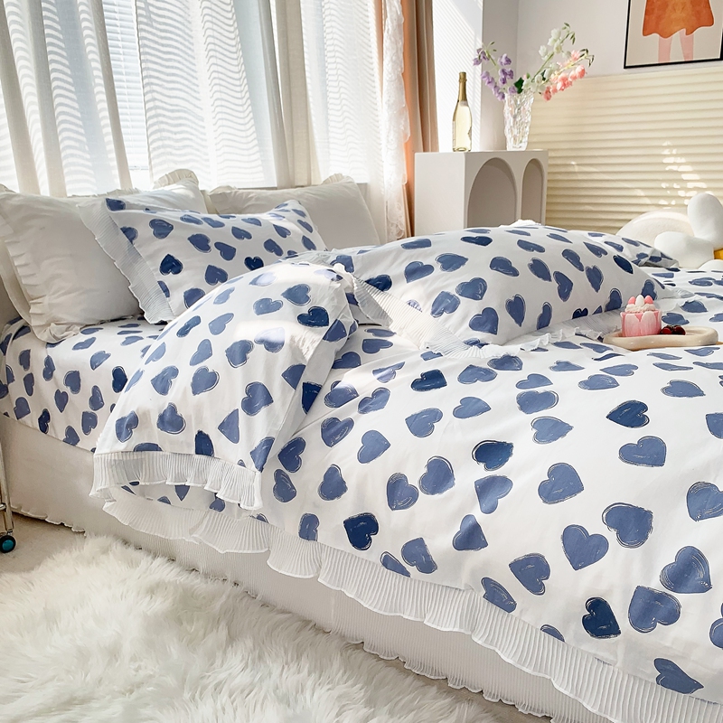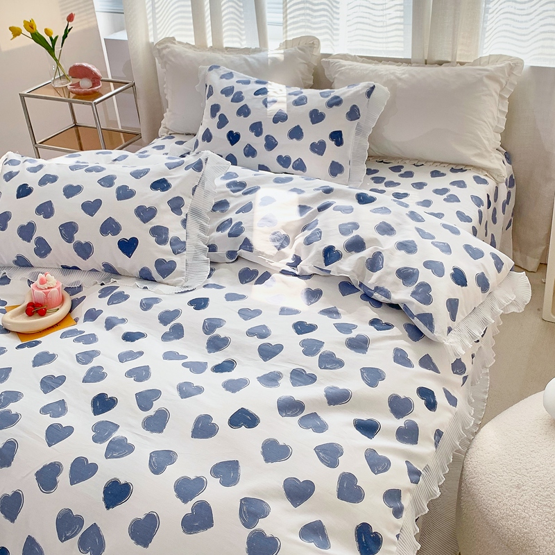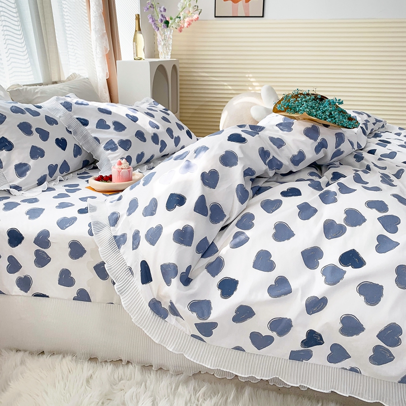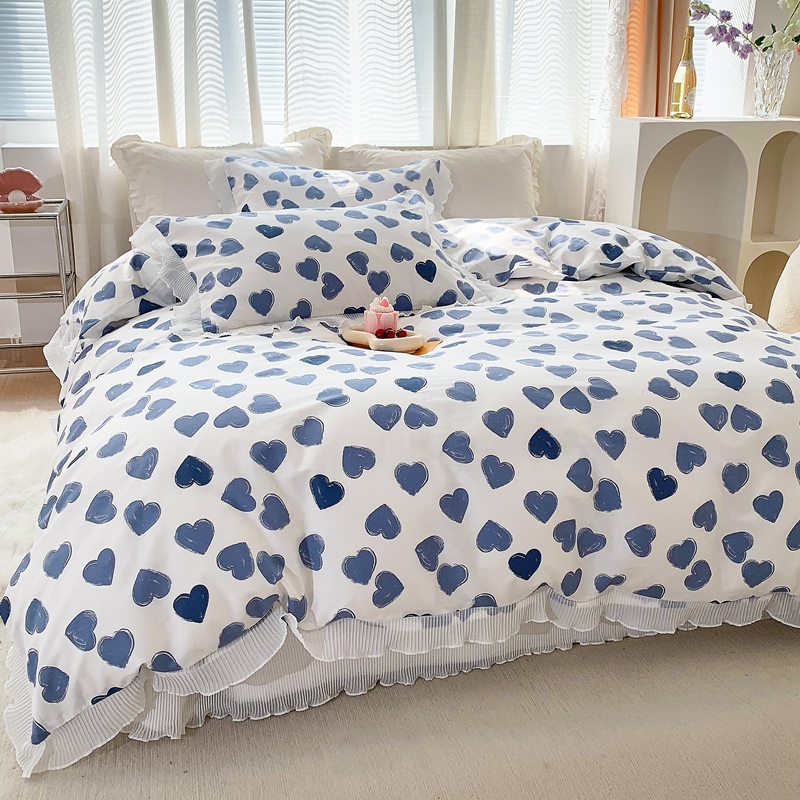 商品名称:舒居家纺 2024新款13070全棉花边被套单品 爱慕 蓝