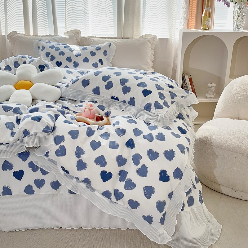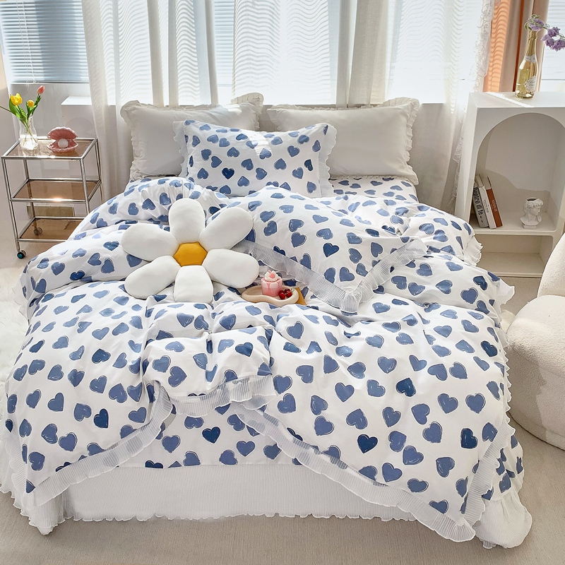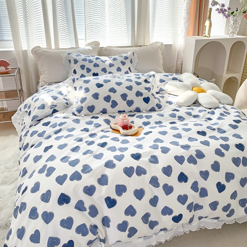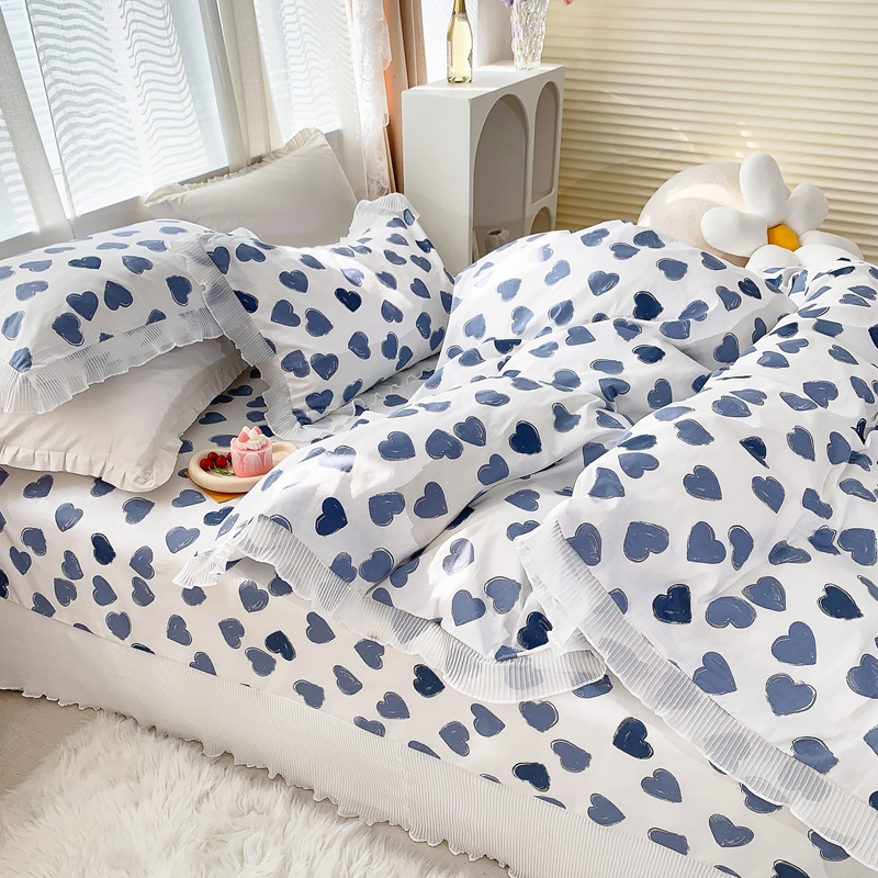 舒居家纺 2024新款13070全棉花边被套单品 爱慕 蓝