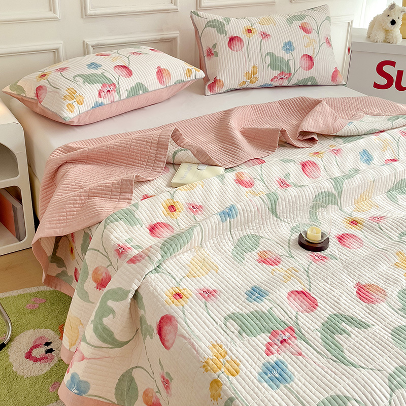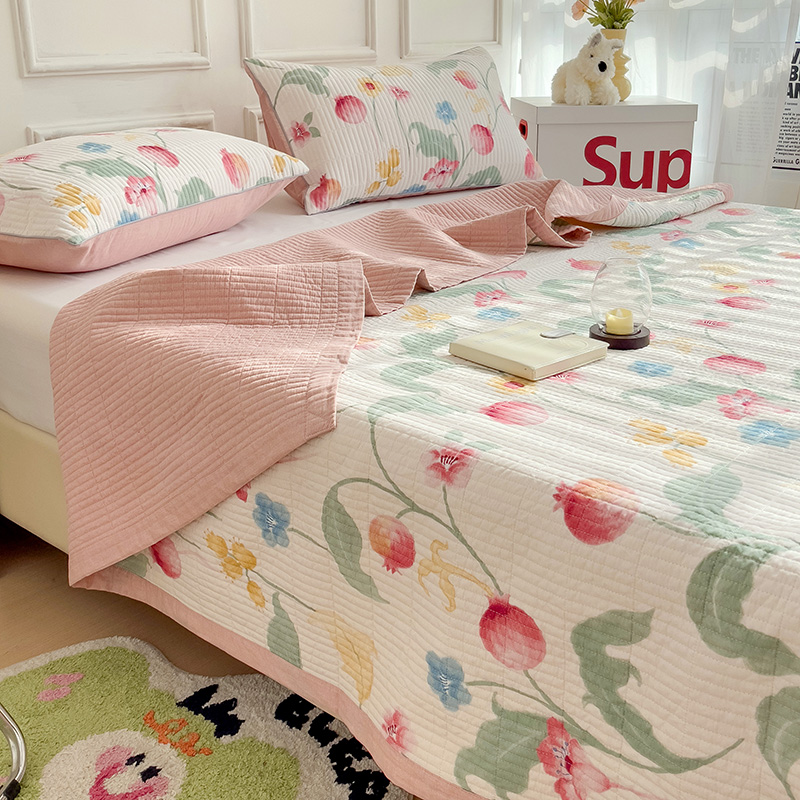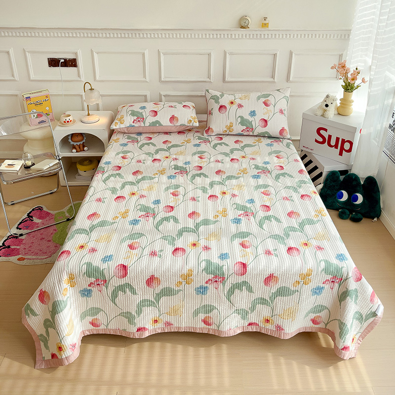 商品名称:沐纯家居 2024新款40S13372双面纯棉床盖三件套 时榴