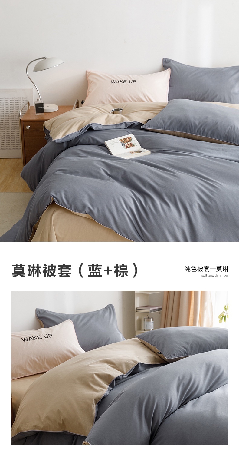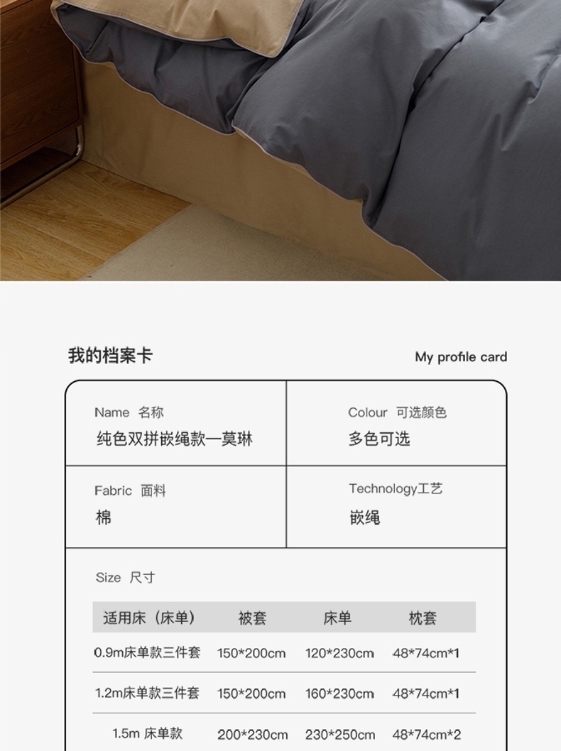 商品名称:卡姿家纺 2024春夏纯色双拼嵌绳款单被套—莫琳 莫琳 被套蓝棕