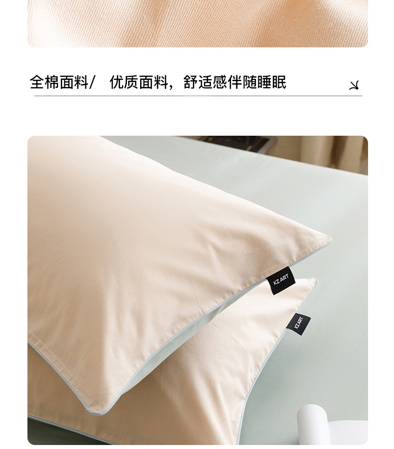 卡姿家纺 2024春夏纯色双拼嵌绳款单枕套—莫琳 莫琳 枕套杏绿