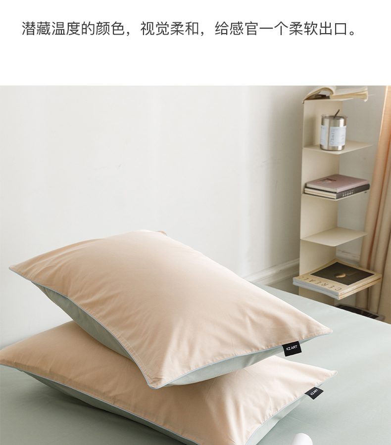 商品名称:卡姿家纺 2024春夏纯色双拼嵌绳款单枕套—莫琳 莫琳 枕套杏绿