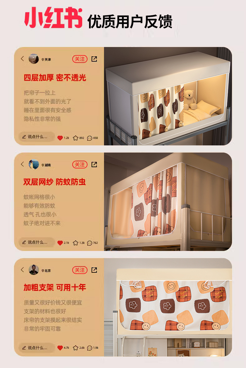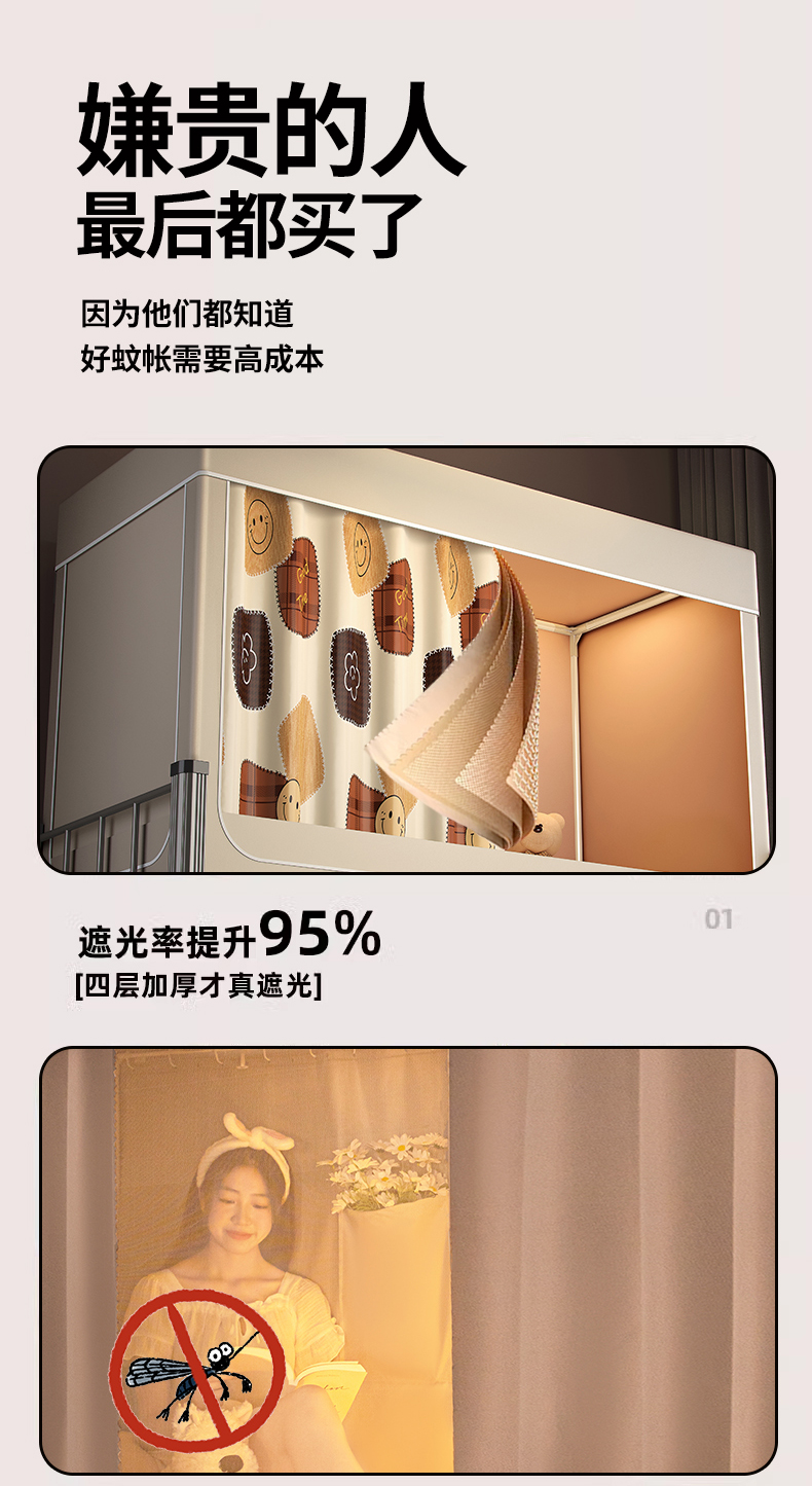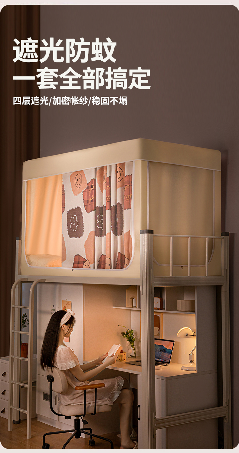 商品名称:青竹苑 2024新款涂银强遮光学生蚊帐上下铺坐床蚊帐 Goodtime