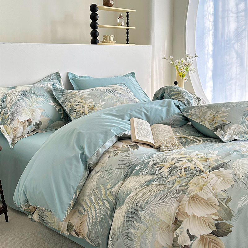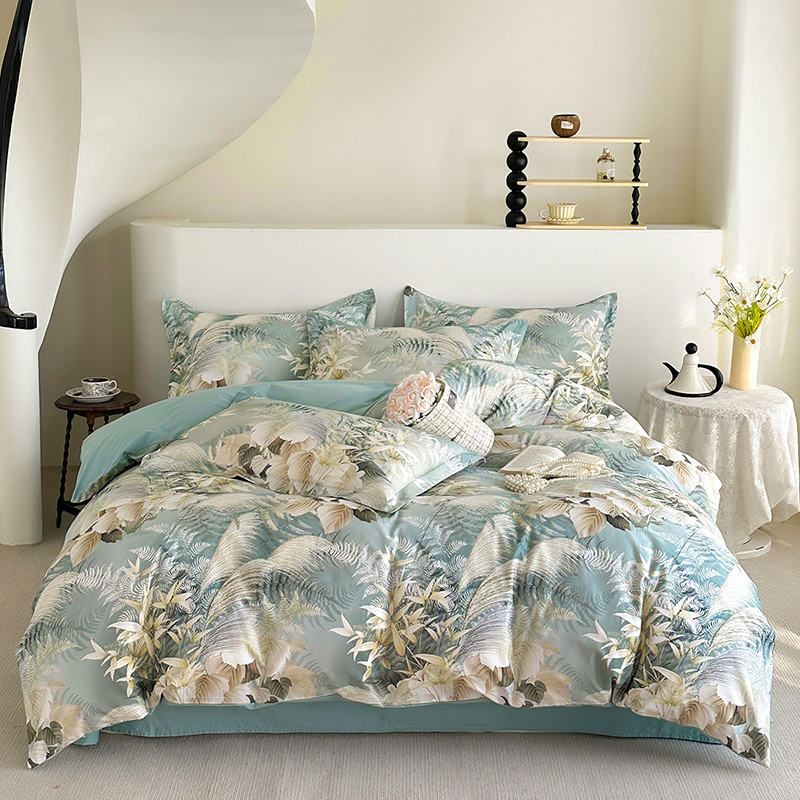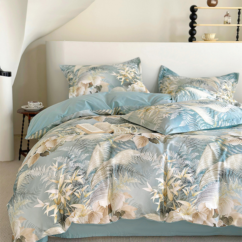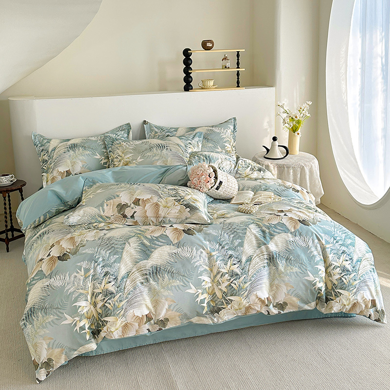 元元被芯 2024新款全棉长绒棉数码印花四件套全棉四件套纯棉四件套 暮云春树-兰