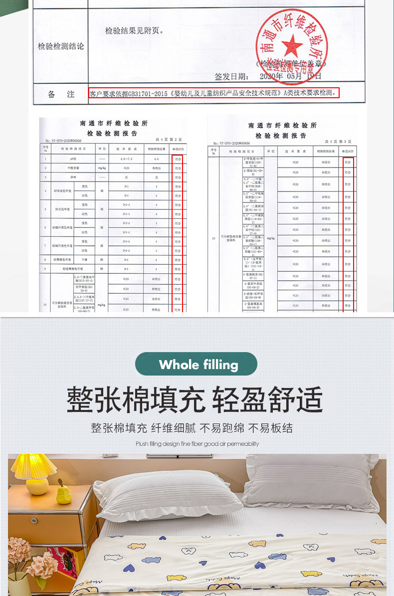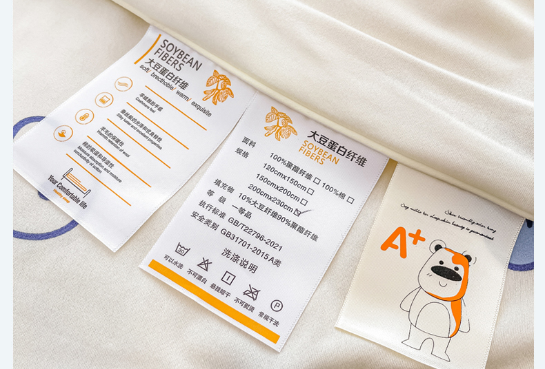 • 填充纤维种类: 大豆蛋白改性聚酯纤维