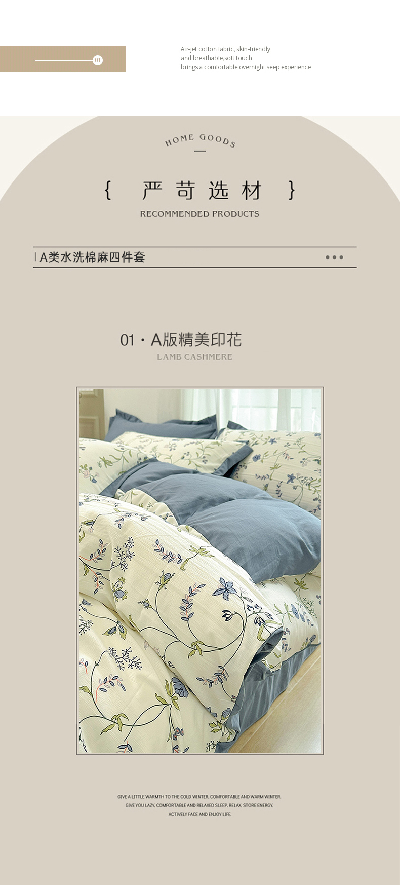 当前位置: 91家纺网 > 商品网购 > 床品套件 > 四件套 > 化纤活性四件套 > 卡普二店 2024新款A类水洗棉麻四件套 丽人花都