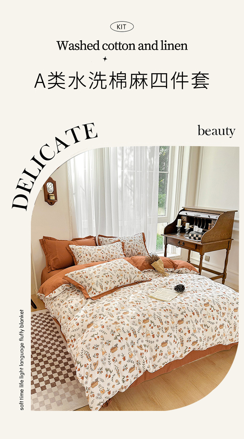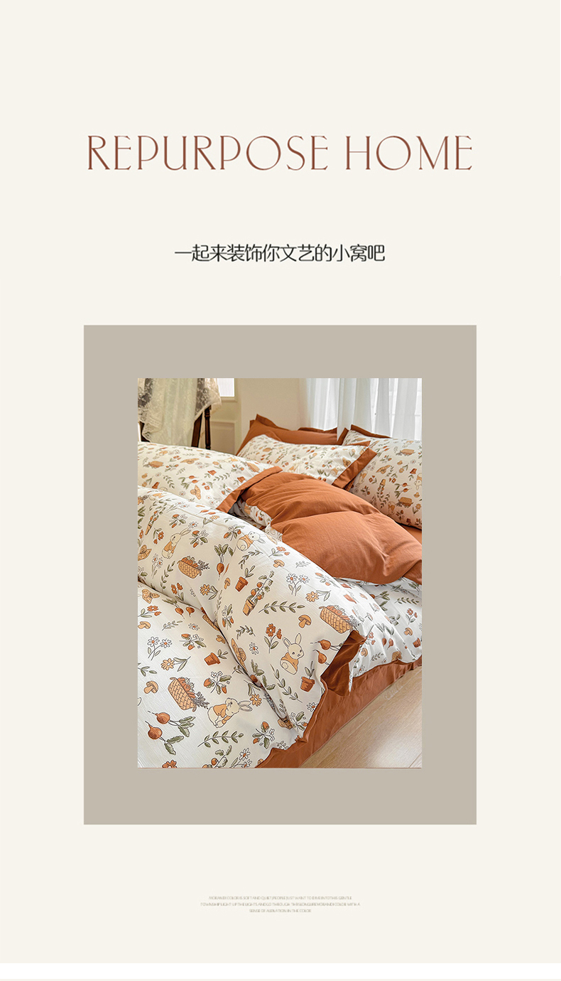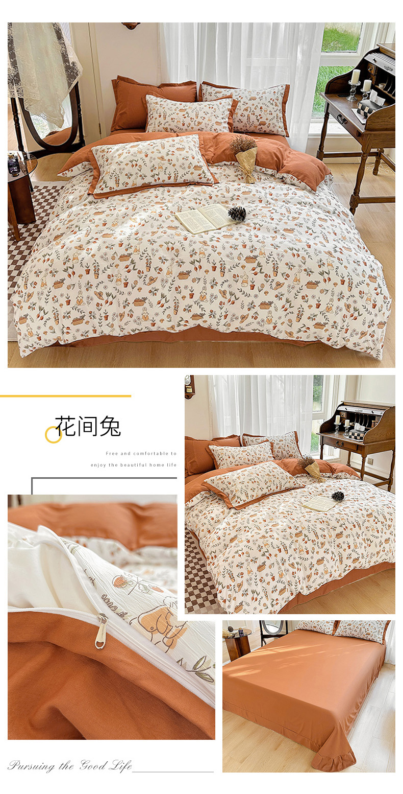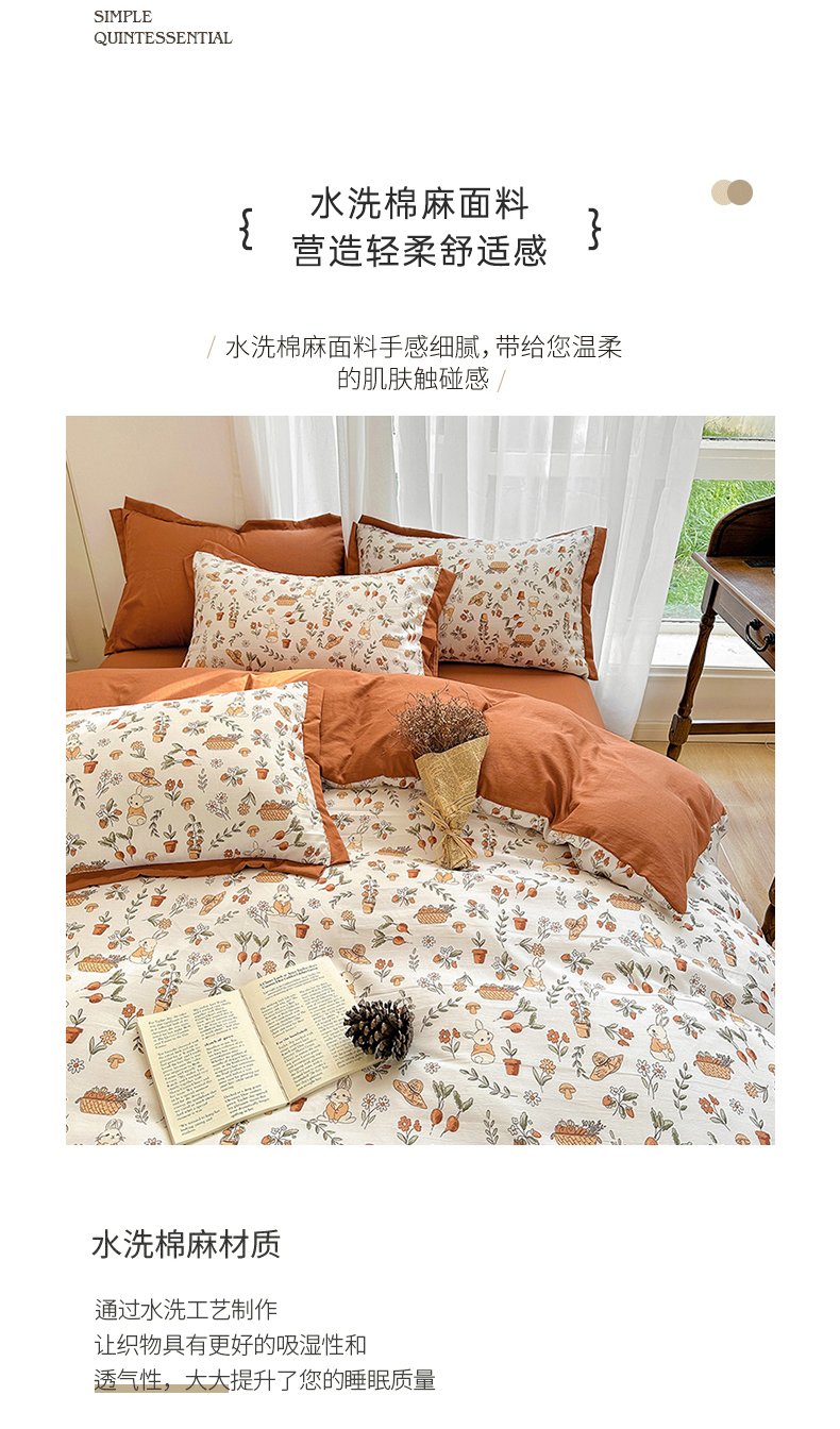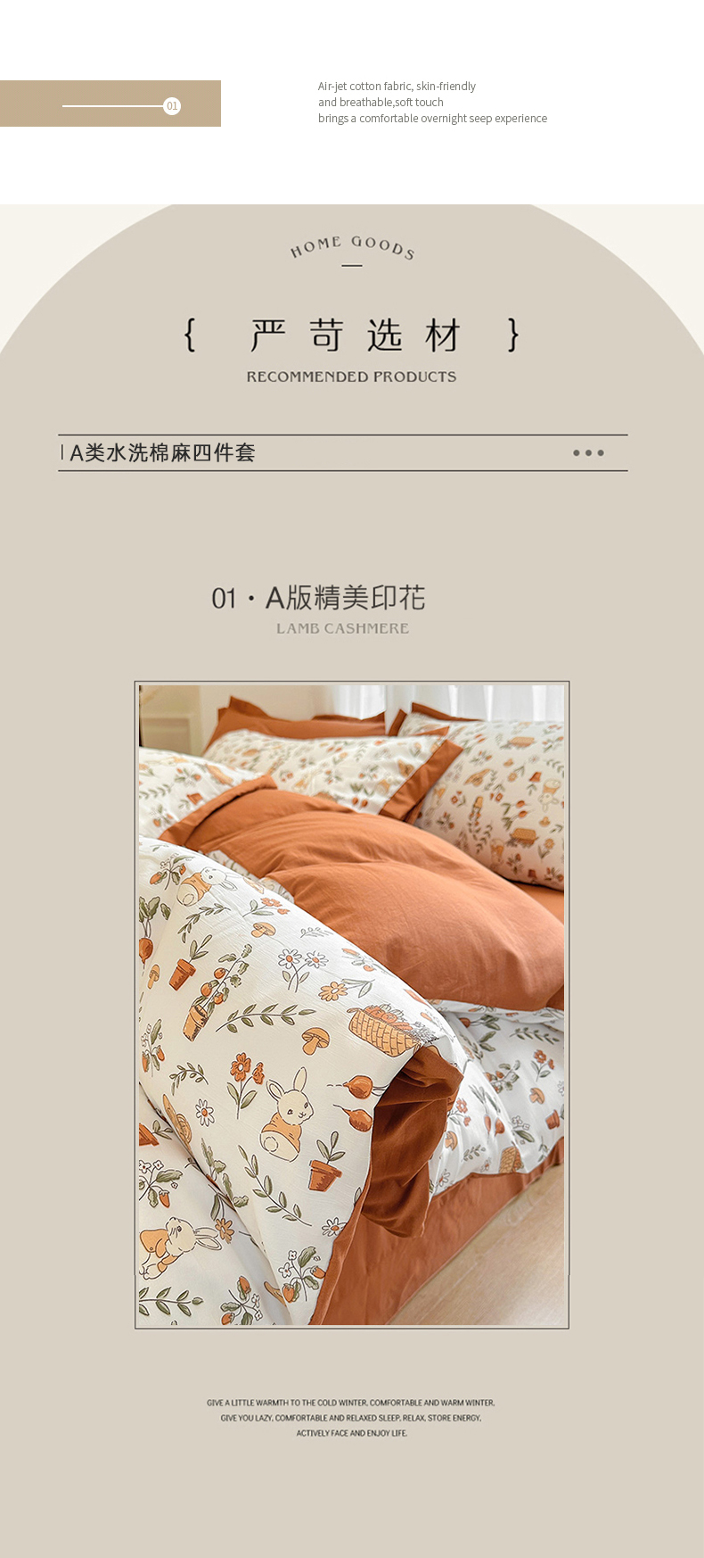 当前位置: 91家纺网 > 商品网购 > 床品套件 > 四件套 > 化纤活性四件套 > 卡普二店 2024新款A类水洗棉麻四件套 花间兔