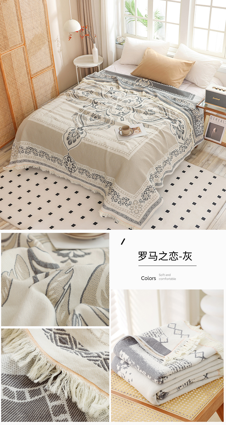 商品名称:朴尔 2024新款基拉尼风流苏花边全棉纱布毛巾被 罗马之恋-灰