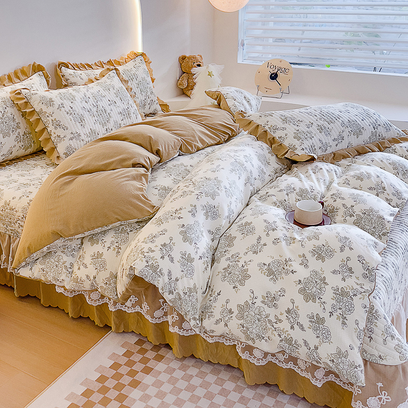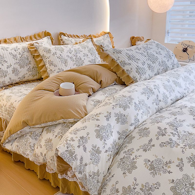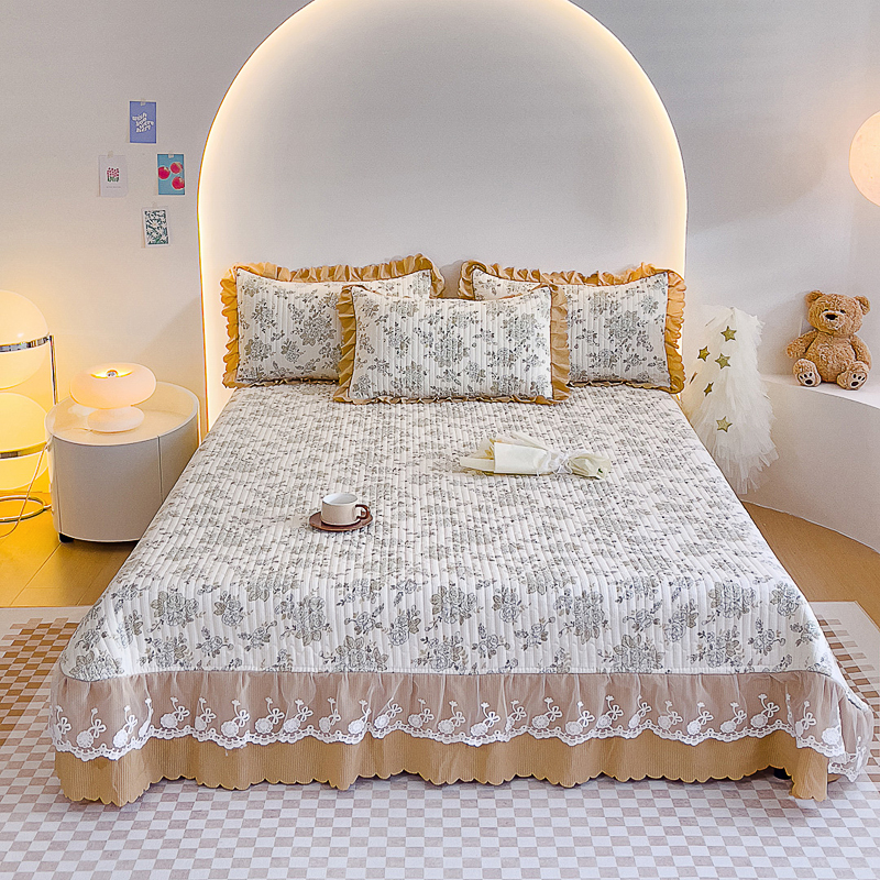 2024直播爆款泡泡棉床盖款四件套双层蕾丝花边夹棉床裙款三件套 赫本