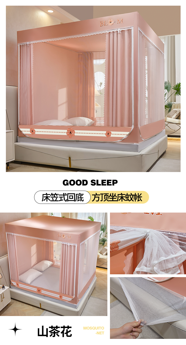 商品名称:艾晶美 2025新款轻奢风坐床式布帘遮光蚊帐 山茶花