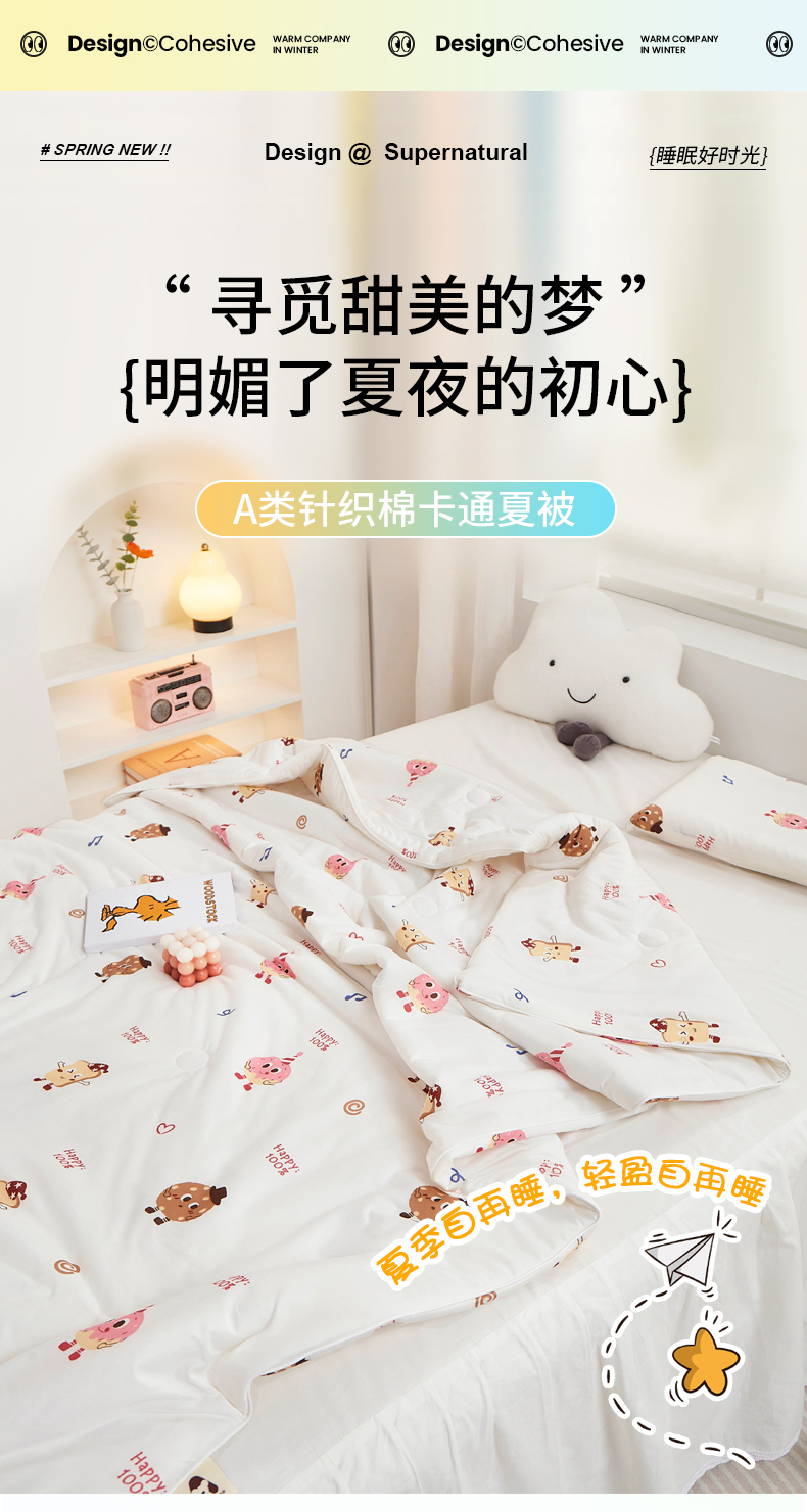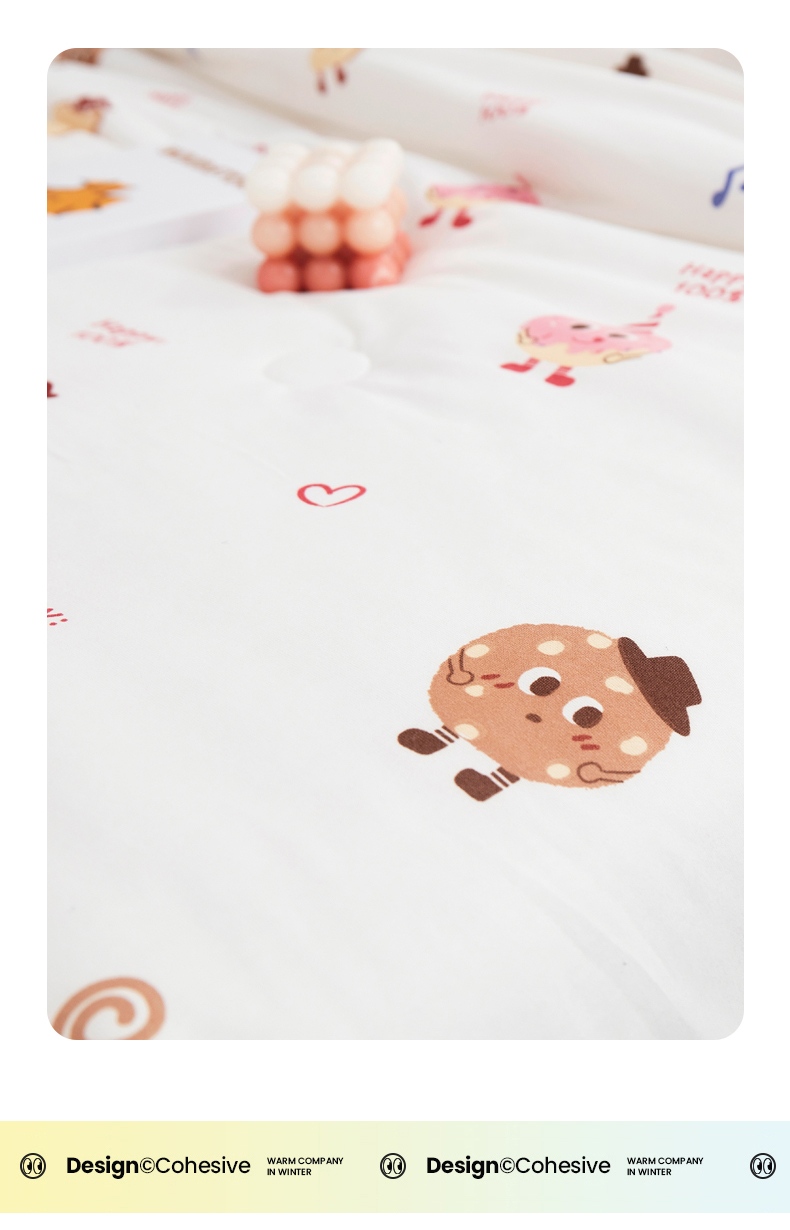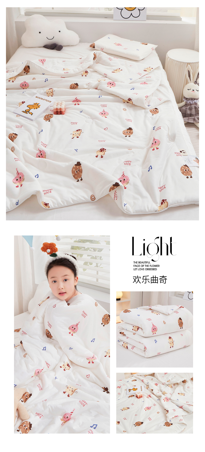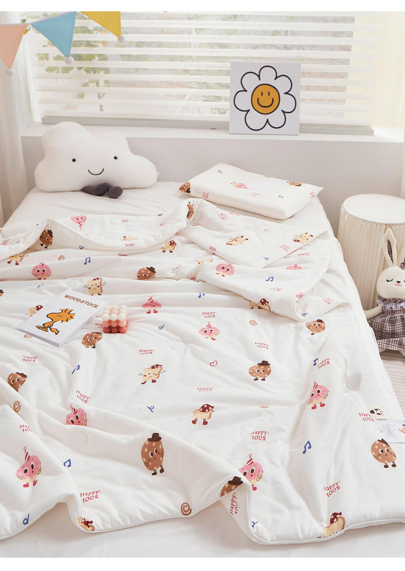 商品名称:丝涟家居 2025新款A类双面针织棉卡通小清新滚绳工艺夏被 欢乐曲奇