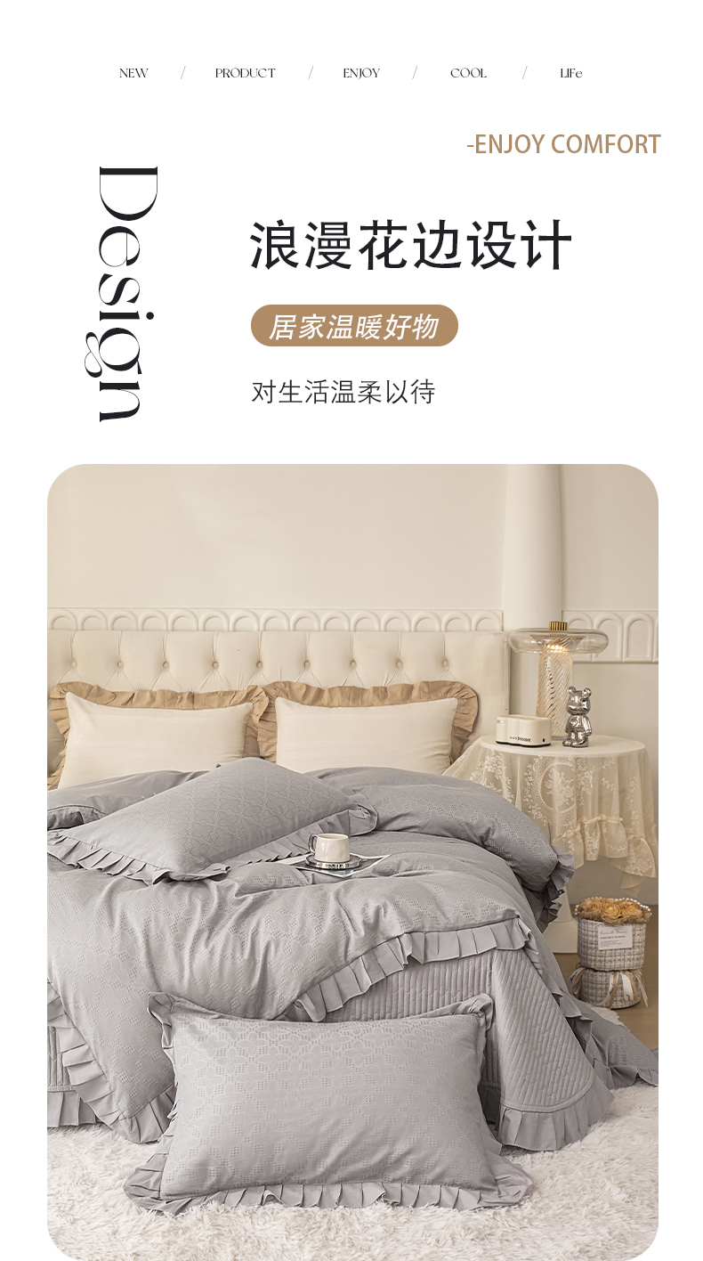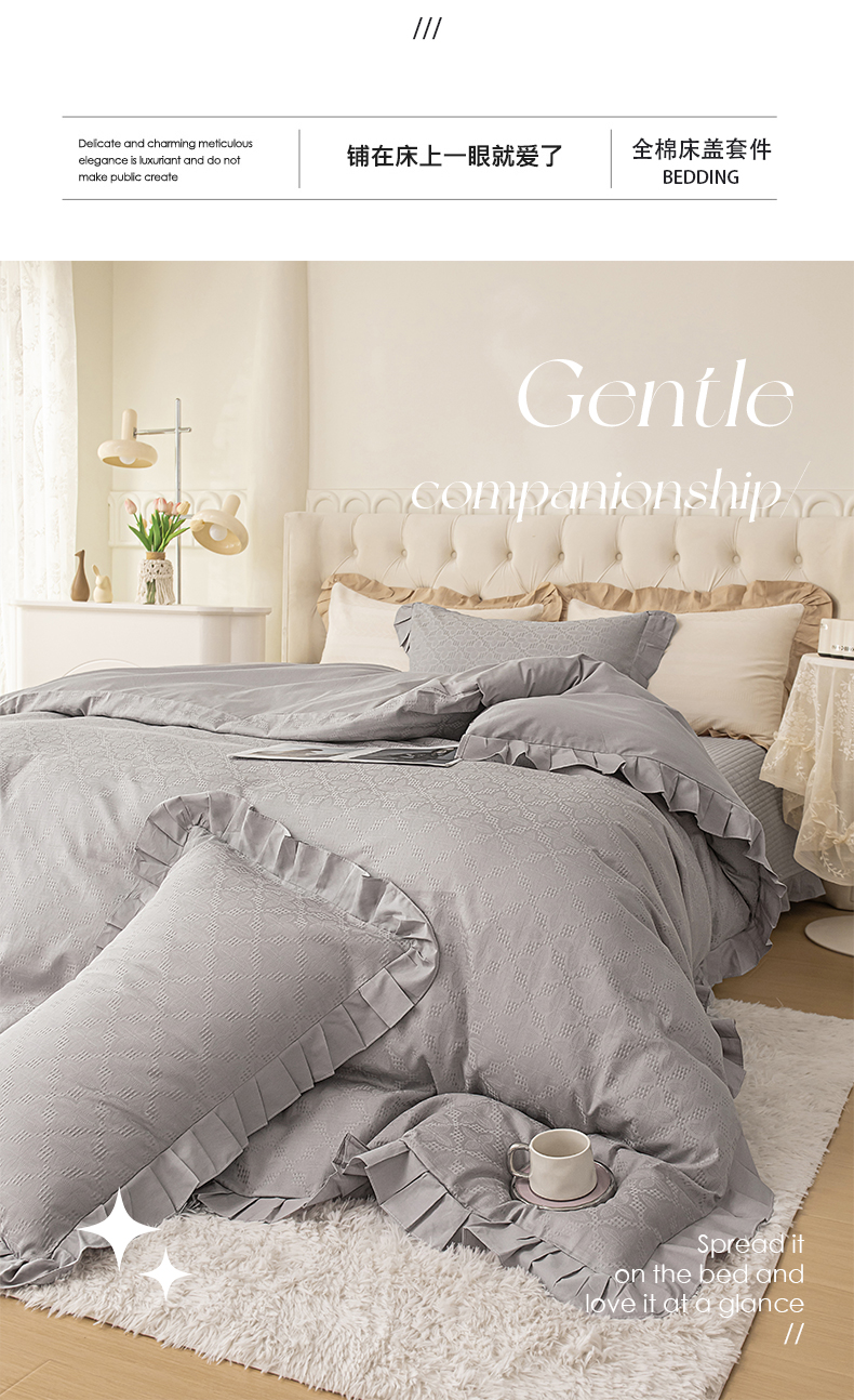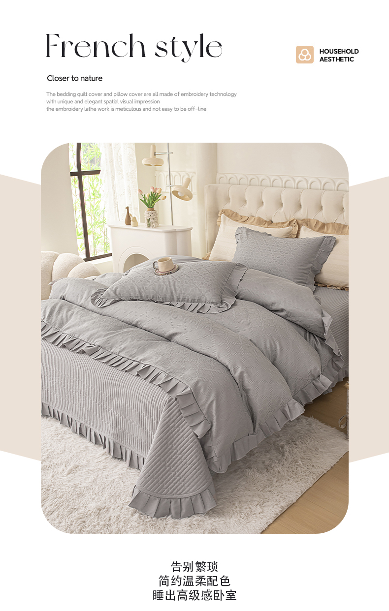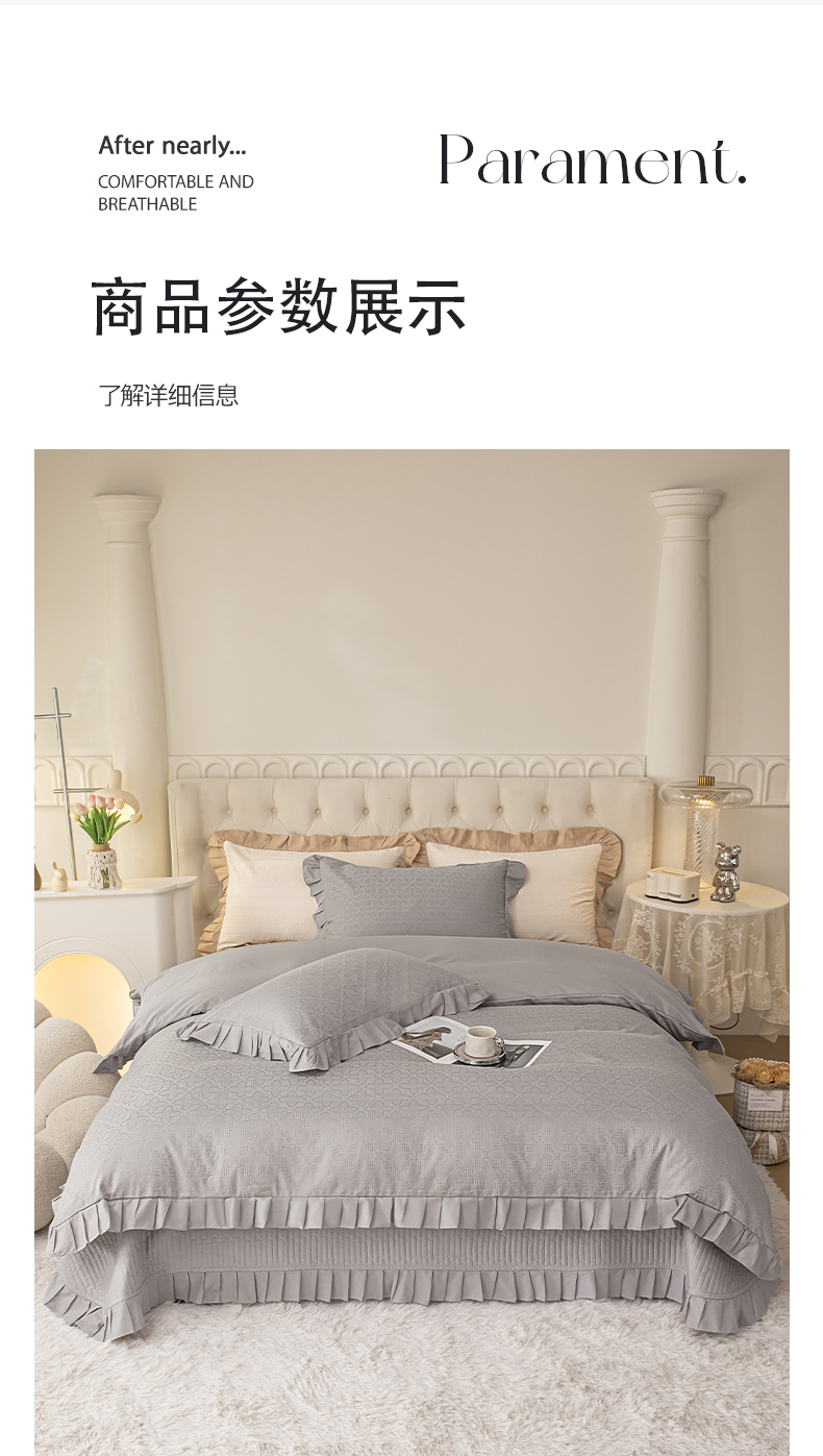 商品名称:美伦美焕 2024新款韩版公主风纯色全棉纯棉花边床盖四件套 大气灰