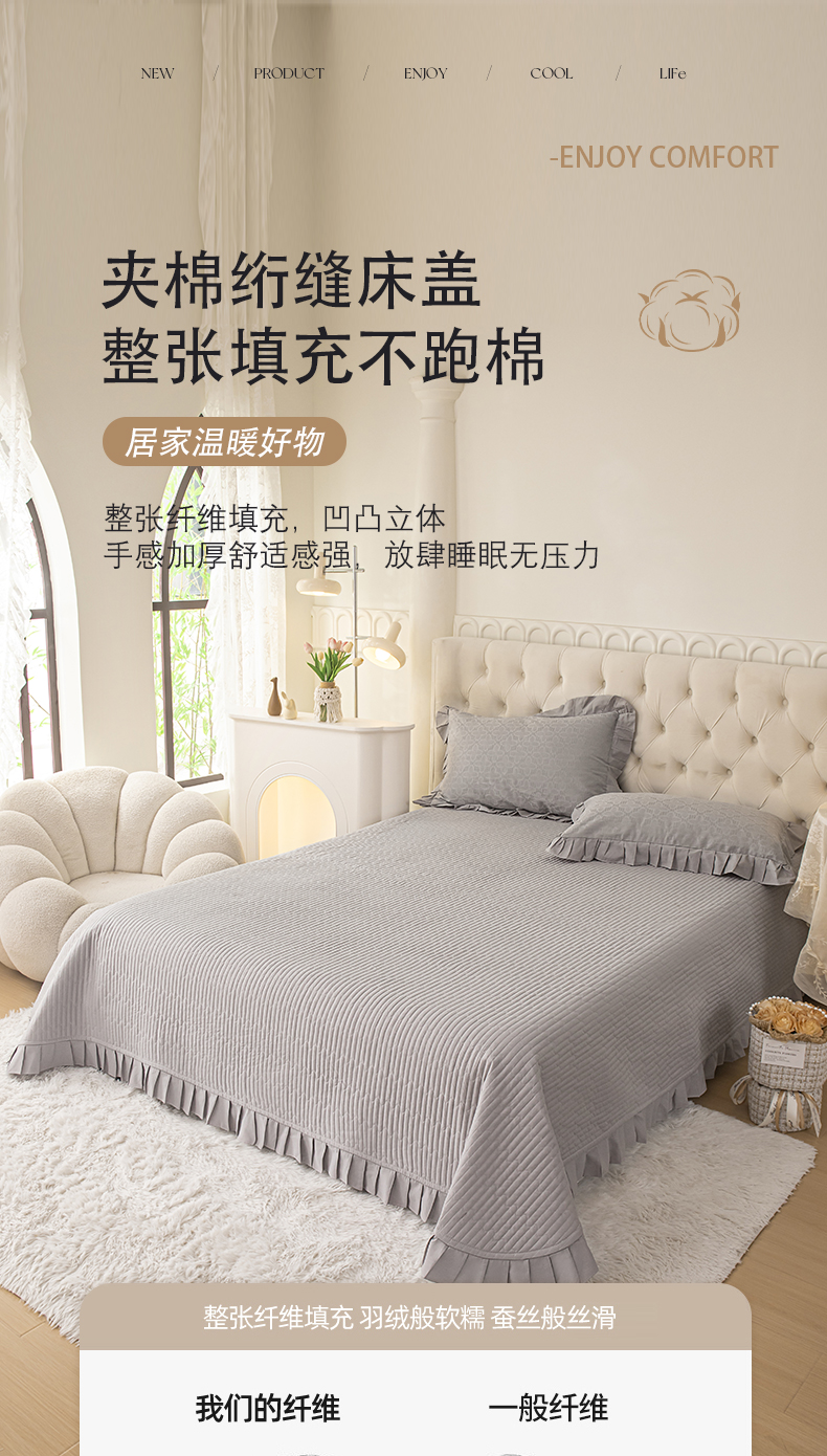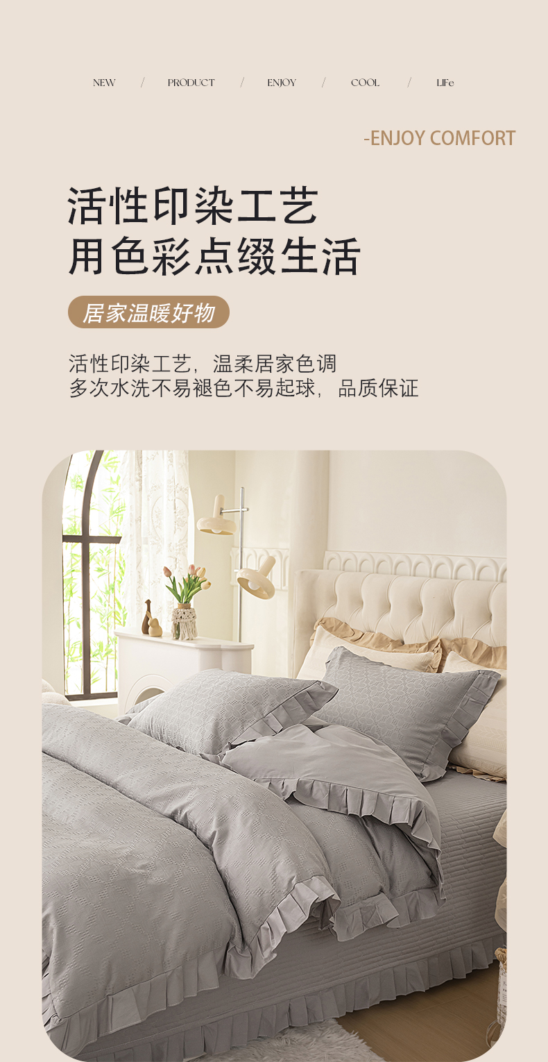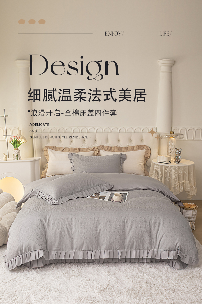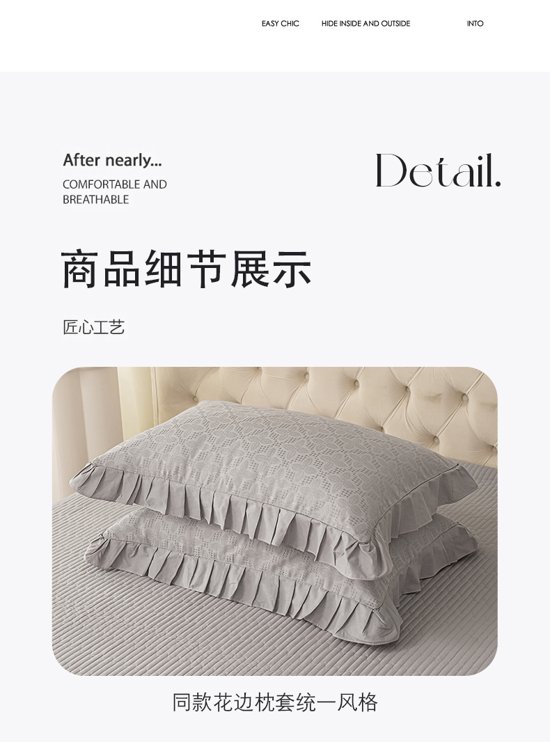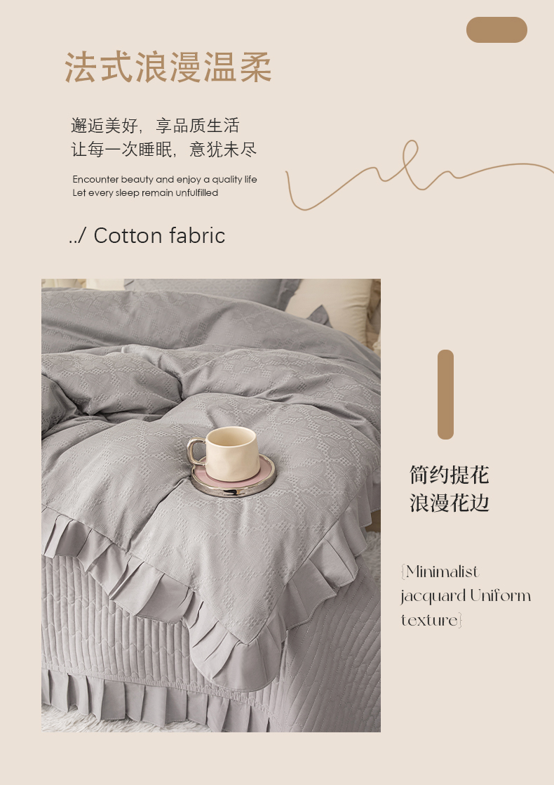 商品名称:美伦美焕 2024新款韩版公主风纯色全棉纯棉花边床盖四件套 大气灰