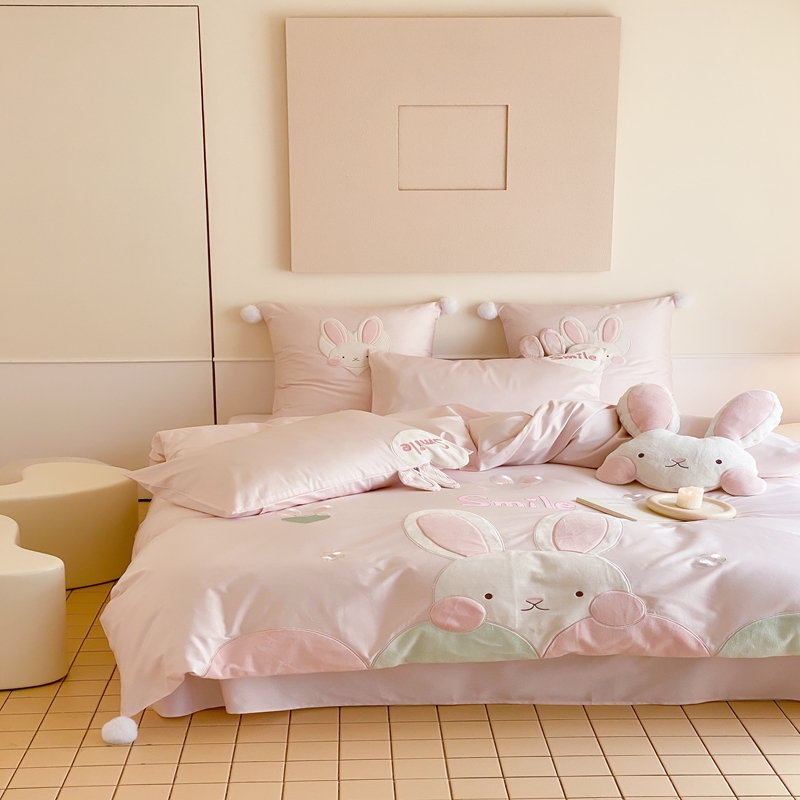(总)星野 2024新款棉精致刺绣贴布绣四件套-呆萌兔