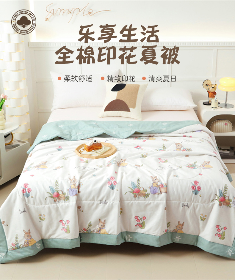 商品名称:瑜珠 2025新款双面全棉印花夏被夏凉被空调被子 田园趣事