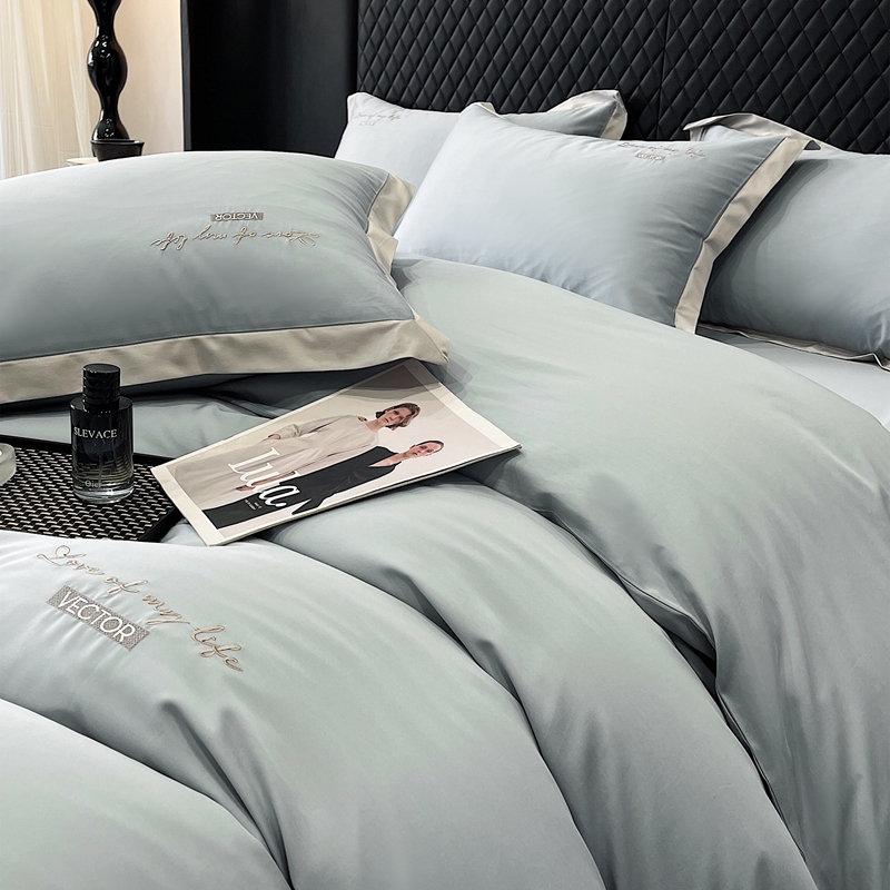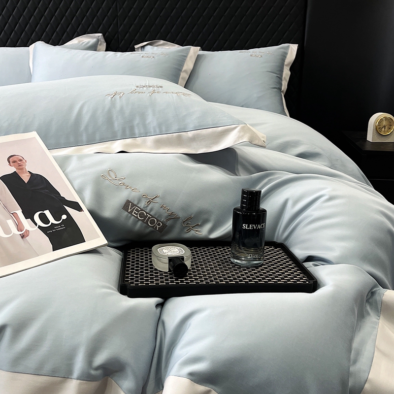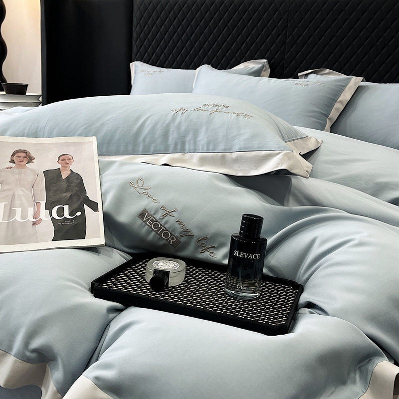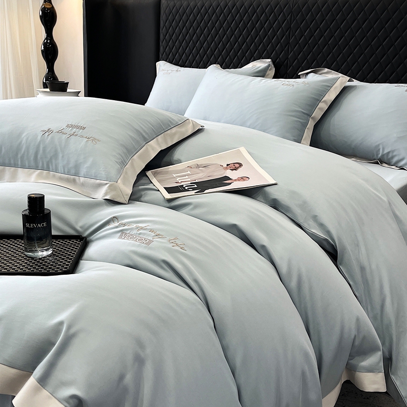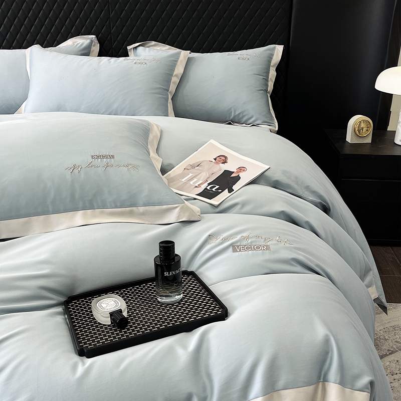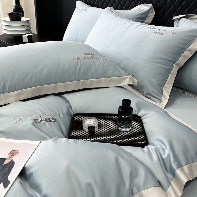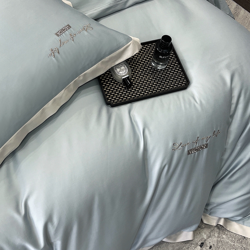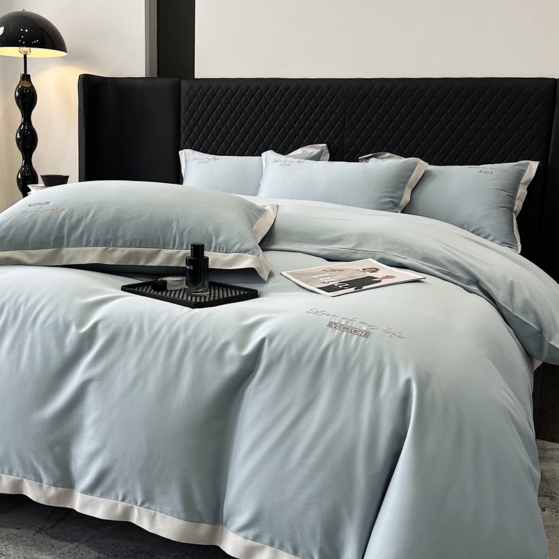 商品名称:若未家居 2025新款50支天丝棉四季款四件套 蛋奶蓝
