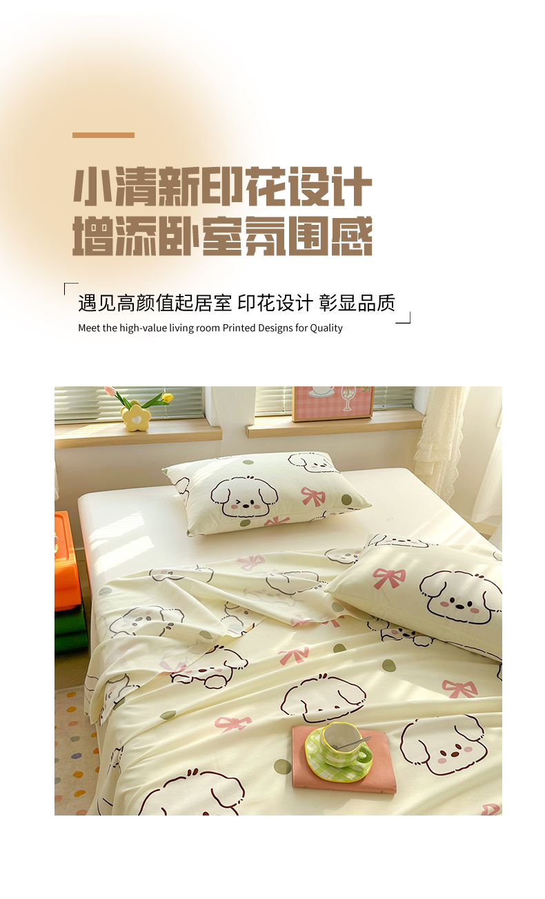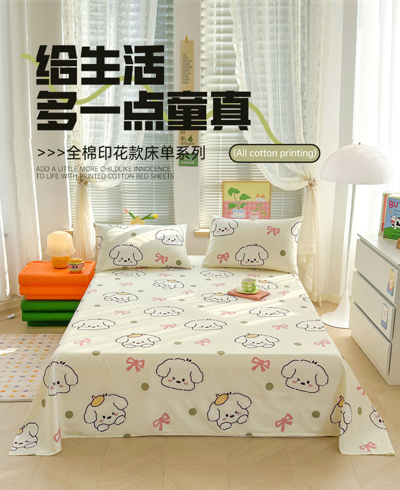 寻米 2024新款纯棉正宗13070印花小清新系列-单床单 波点狗