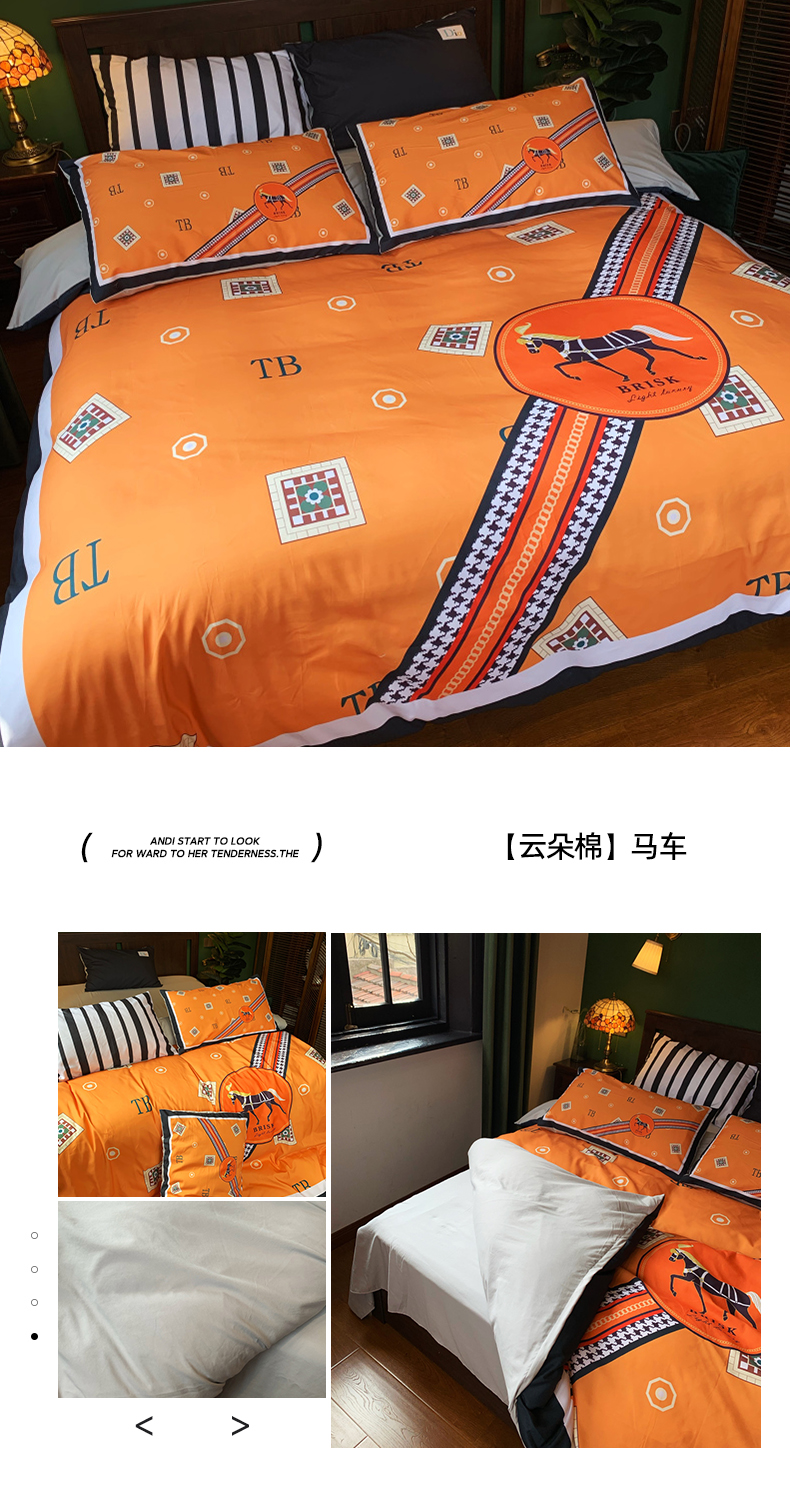 商品名称:色鬼布艺 2024新款花沐春夏云朵水洗棉四件套 【云朵棉】马车