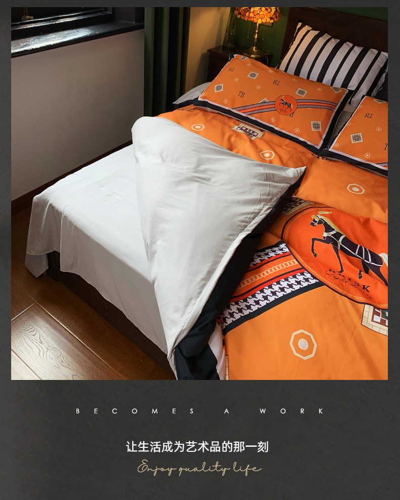(总)色鬼布艺高端家居主号 2025新款轻奢亲肤纯棉数码印花网红热款四件套,豹纹香,白金V,白香花,大H,黑白迪,黑白V,灰迪,咖古,克莱因,慕斯小姐,山茶花,星空