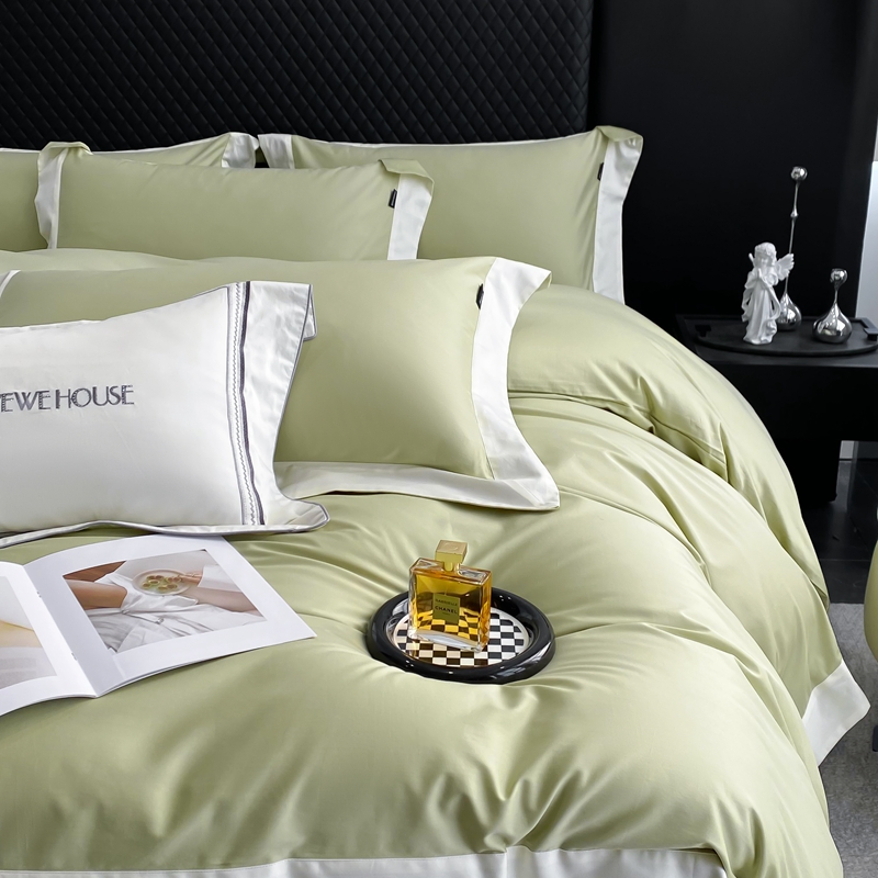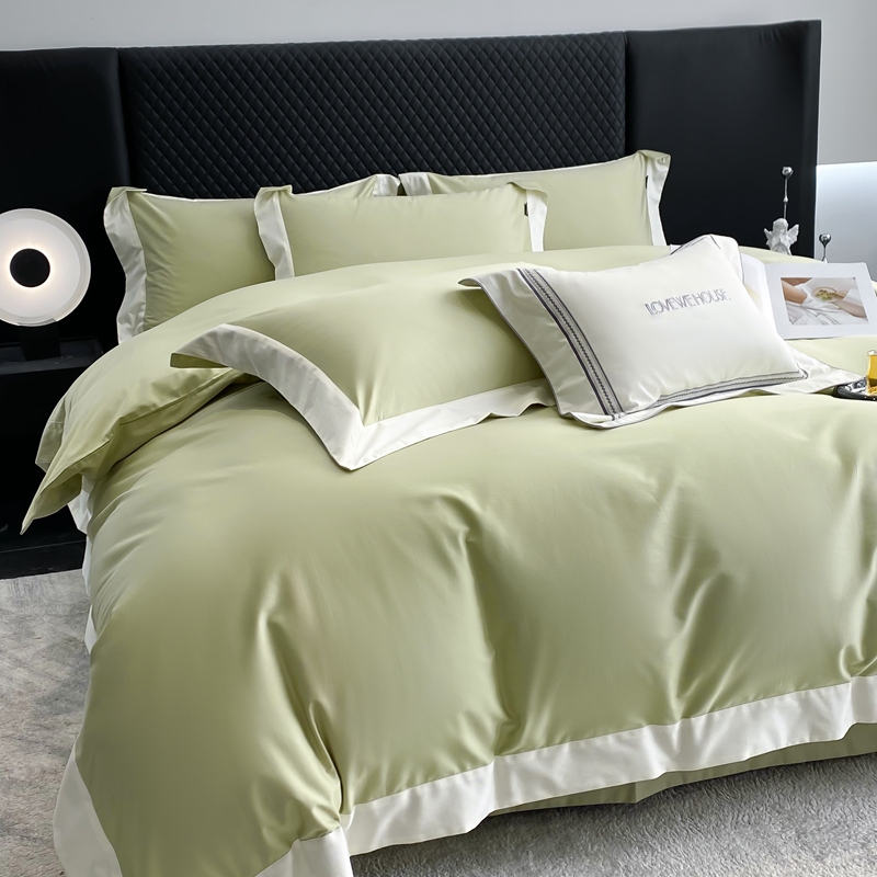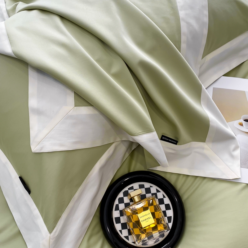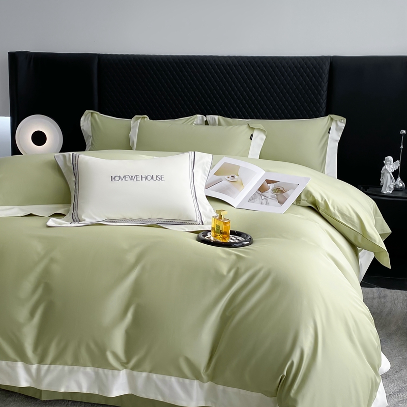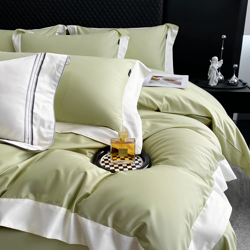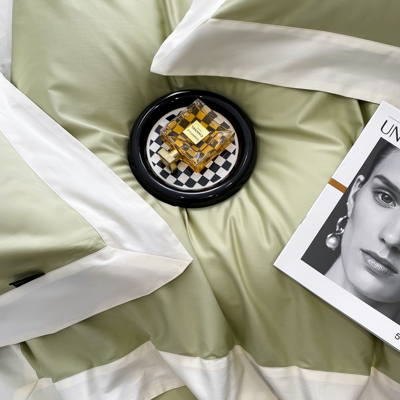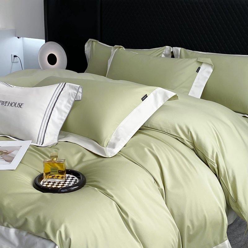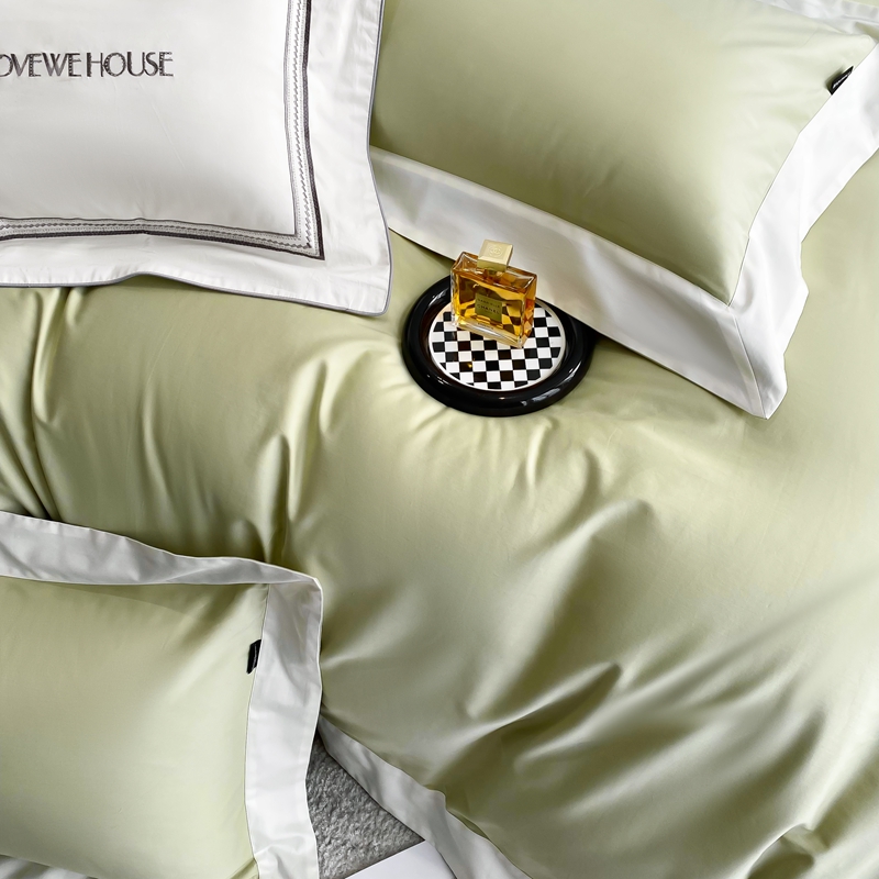 商品名称:若未家居 2025新款50S长绒棉纯色撞色简约拼角款套件-洛斐 奶青