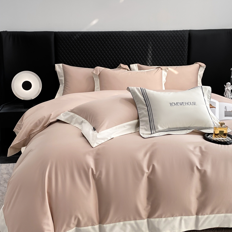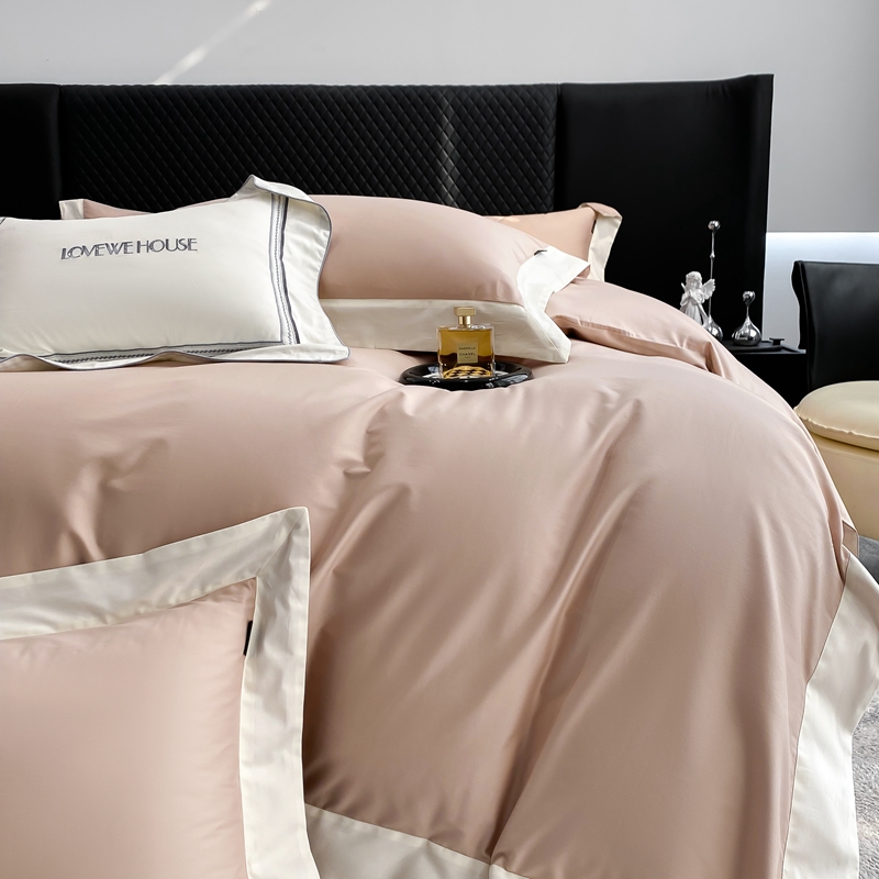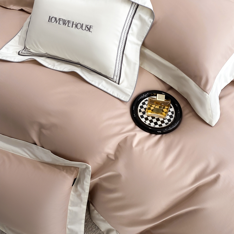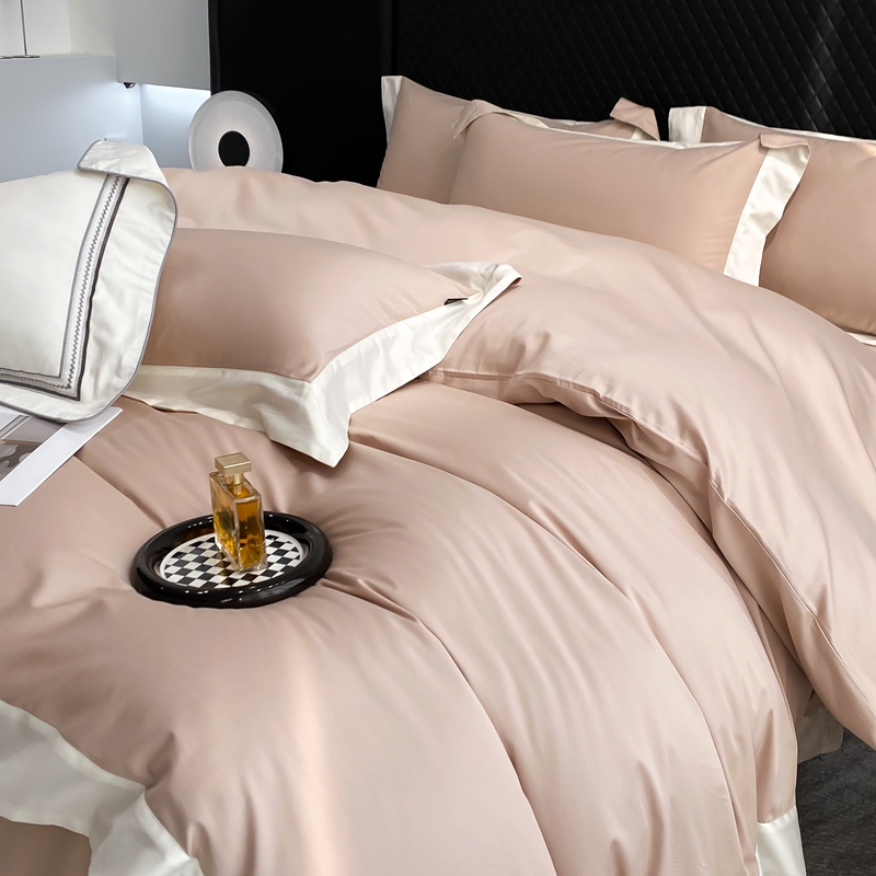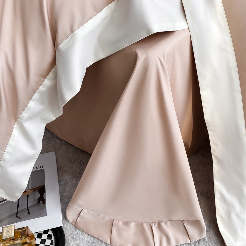 若未家居 2025新款50S长绒棉纯色撞色简约拼角款套件-洛斐 玫瑰粉