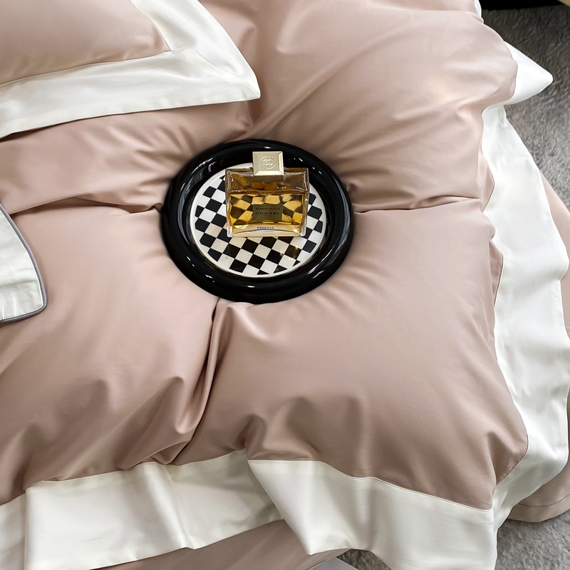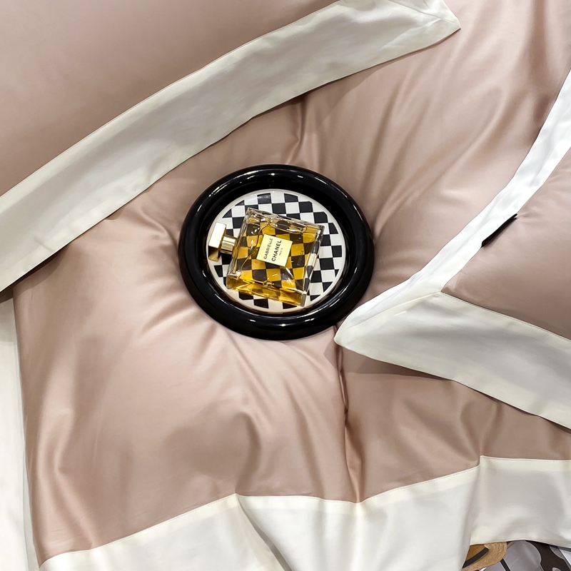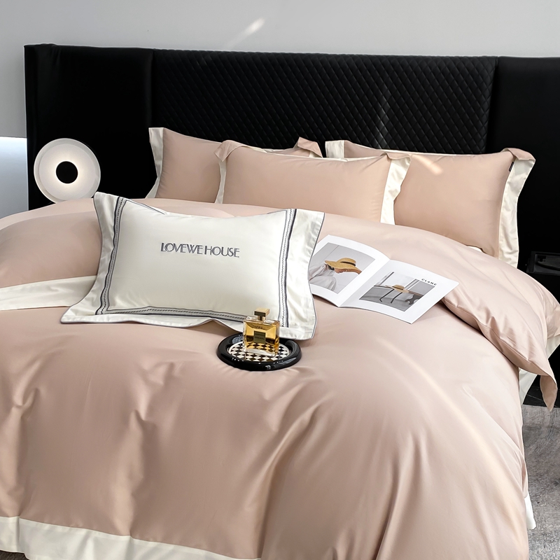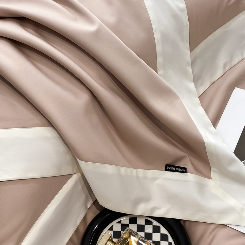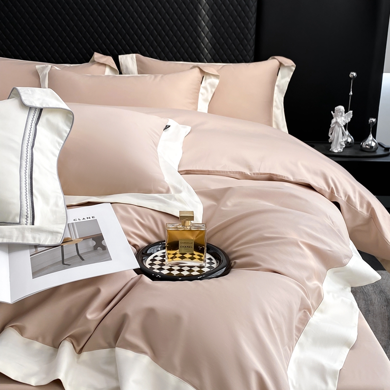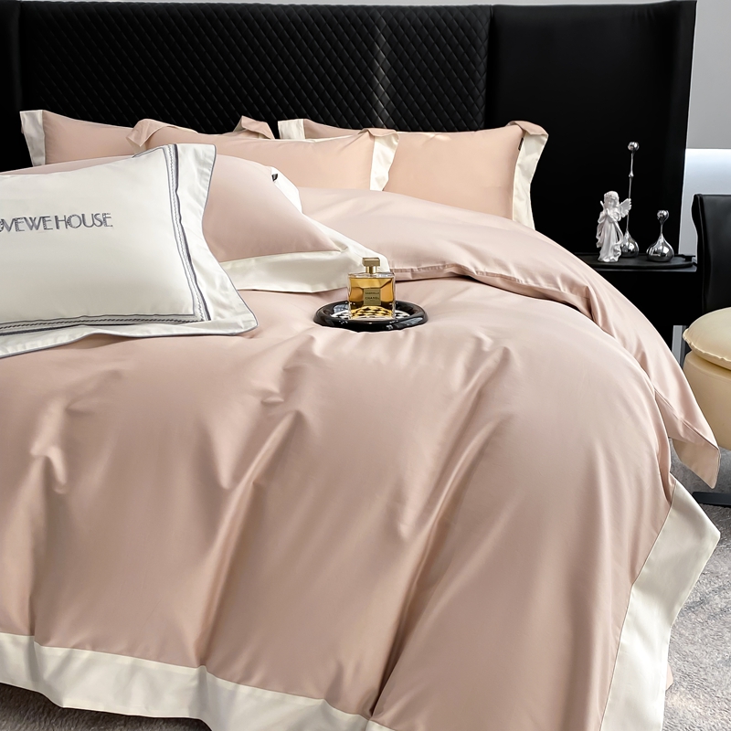 若未家居 2025新款50S长绒棉纯色撞色简约拼角款套件-洛斐 玫瑰粉