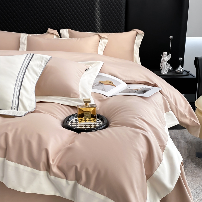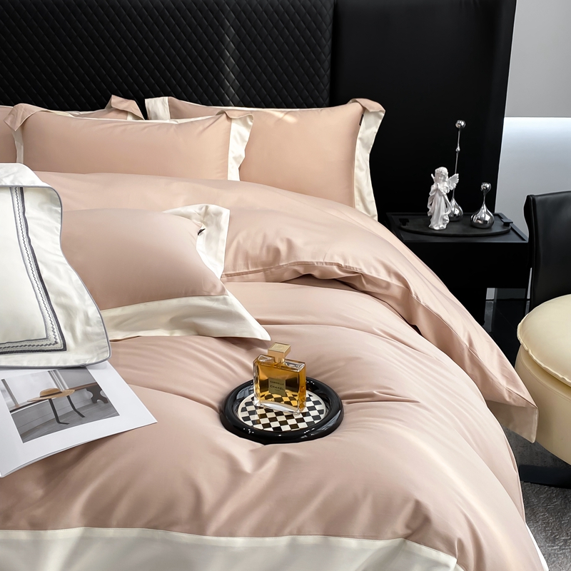 商品名称:若未家居 2025新款50S长绒棉纯色撞色简约拼角款套件-洛斐 玫瑰粉