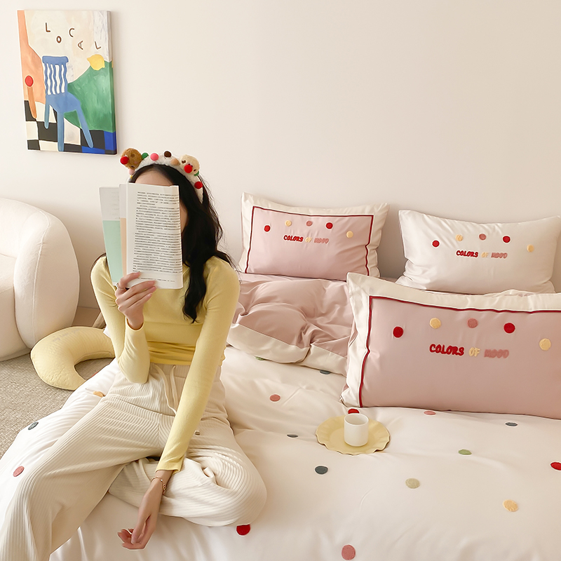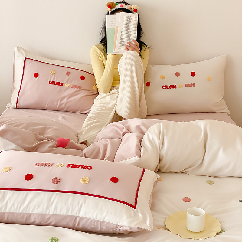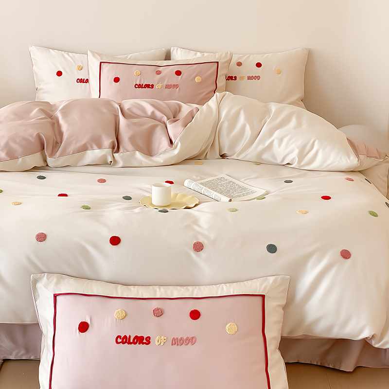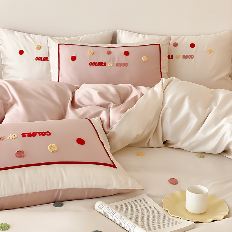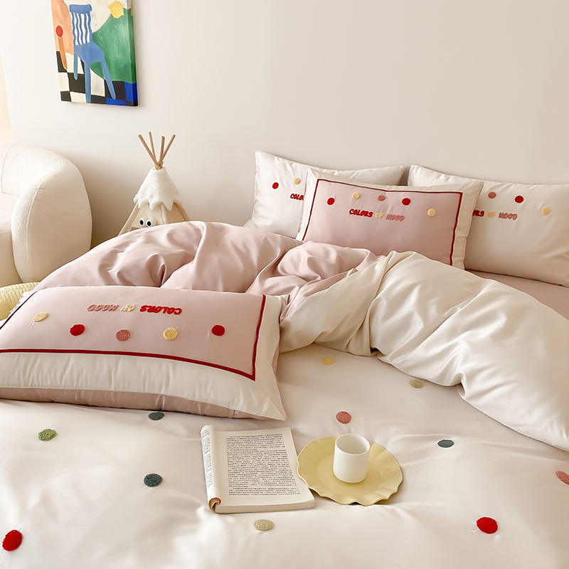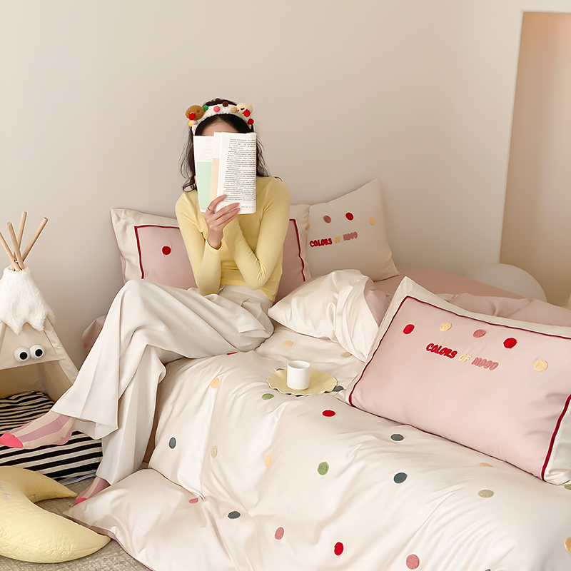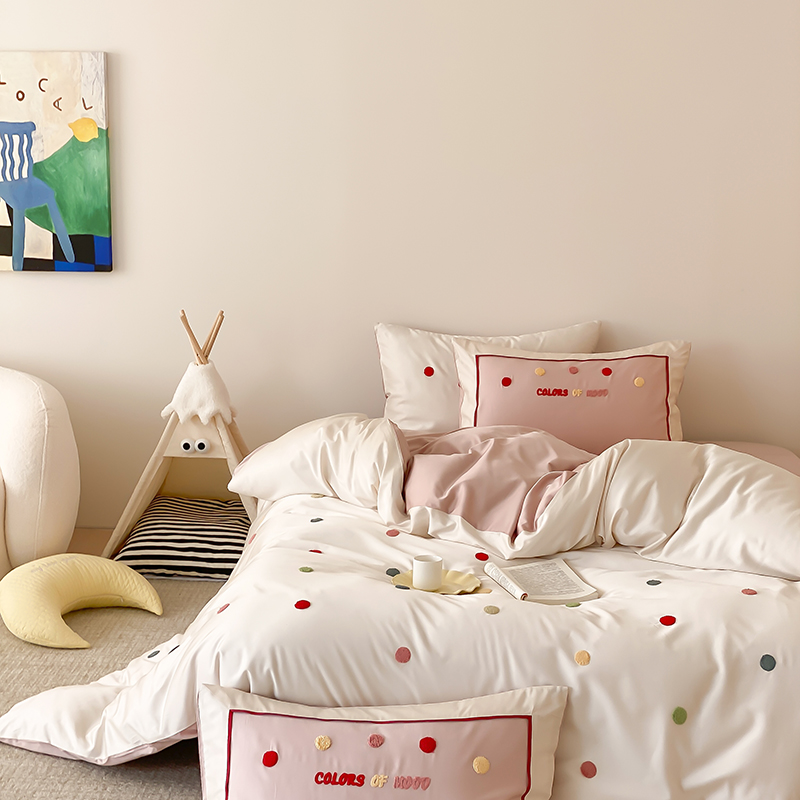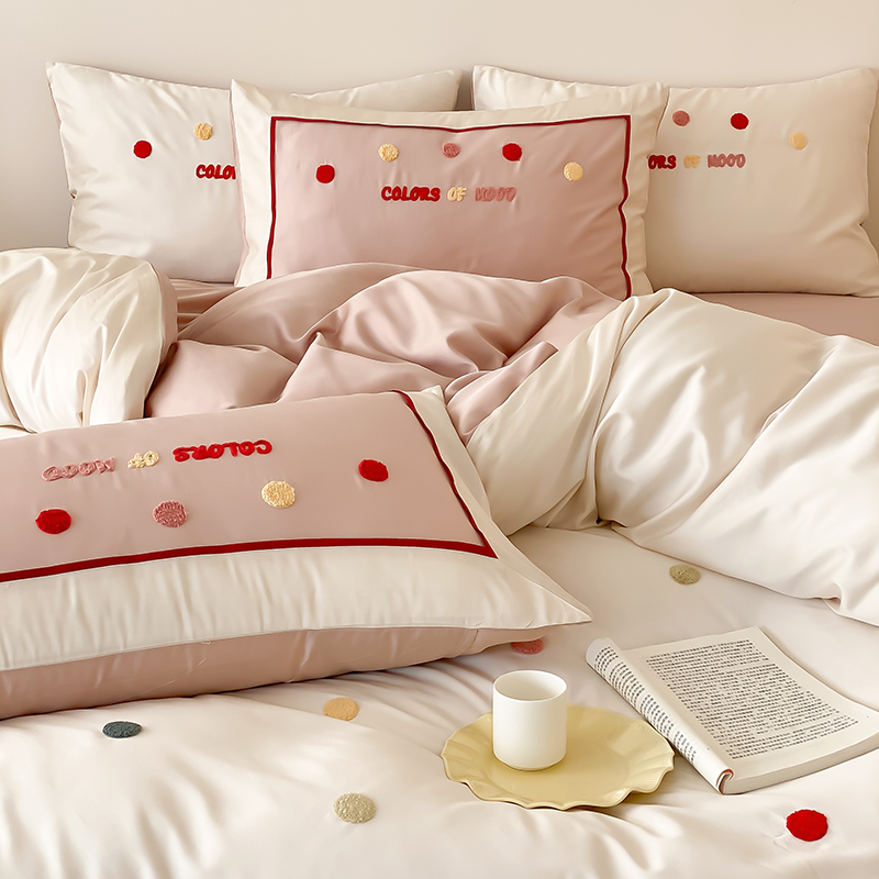(总)时亿 2023新款100支长绒棉四件套心晴,心晴-粉,心晴-灰,心晴-蓝