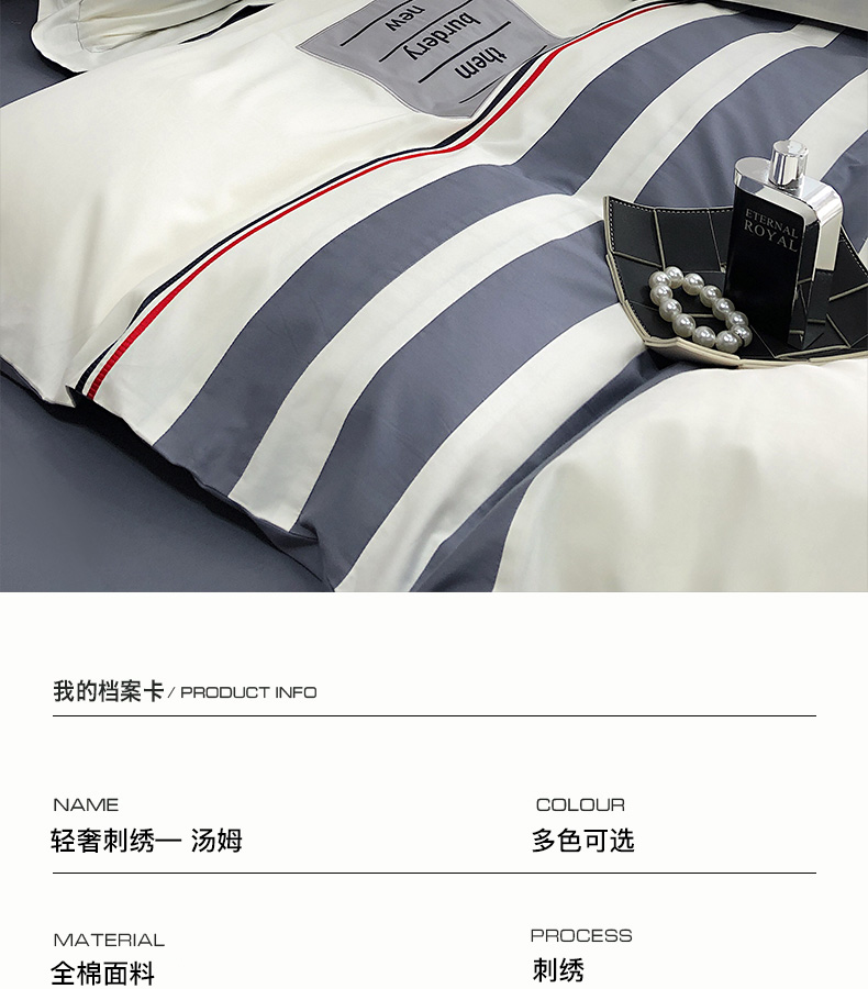 商品名称:卡姿家纺 2024春夏轻奢刺绣系列四件套— 汤姆 汤姆白