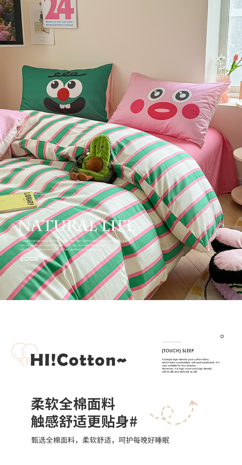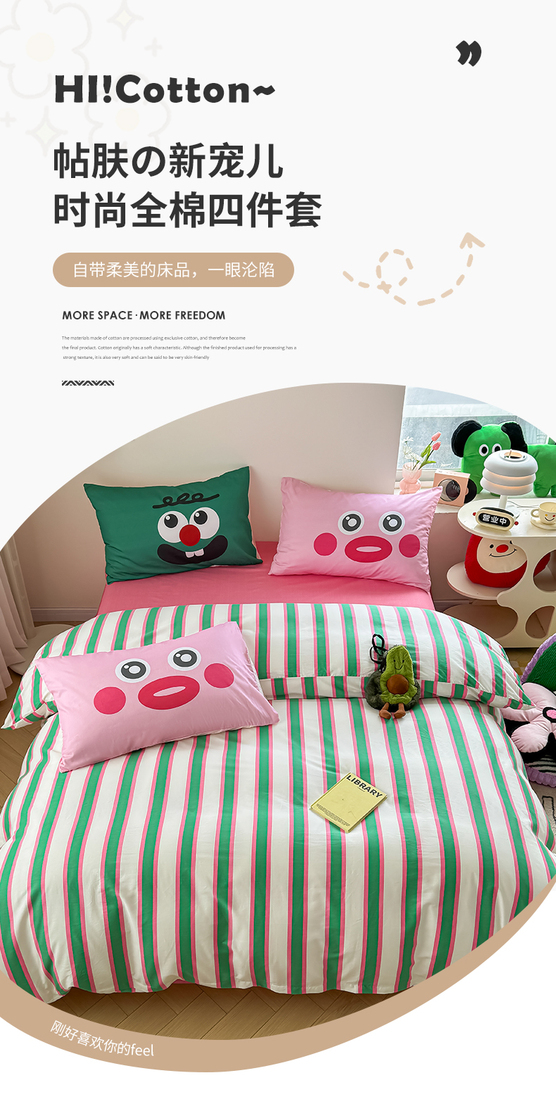 2024新款大版枕套数码印花全棉四件套 糖果条纹
