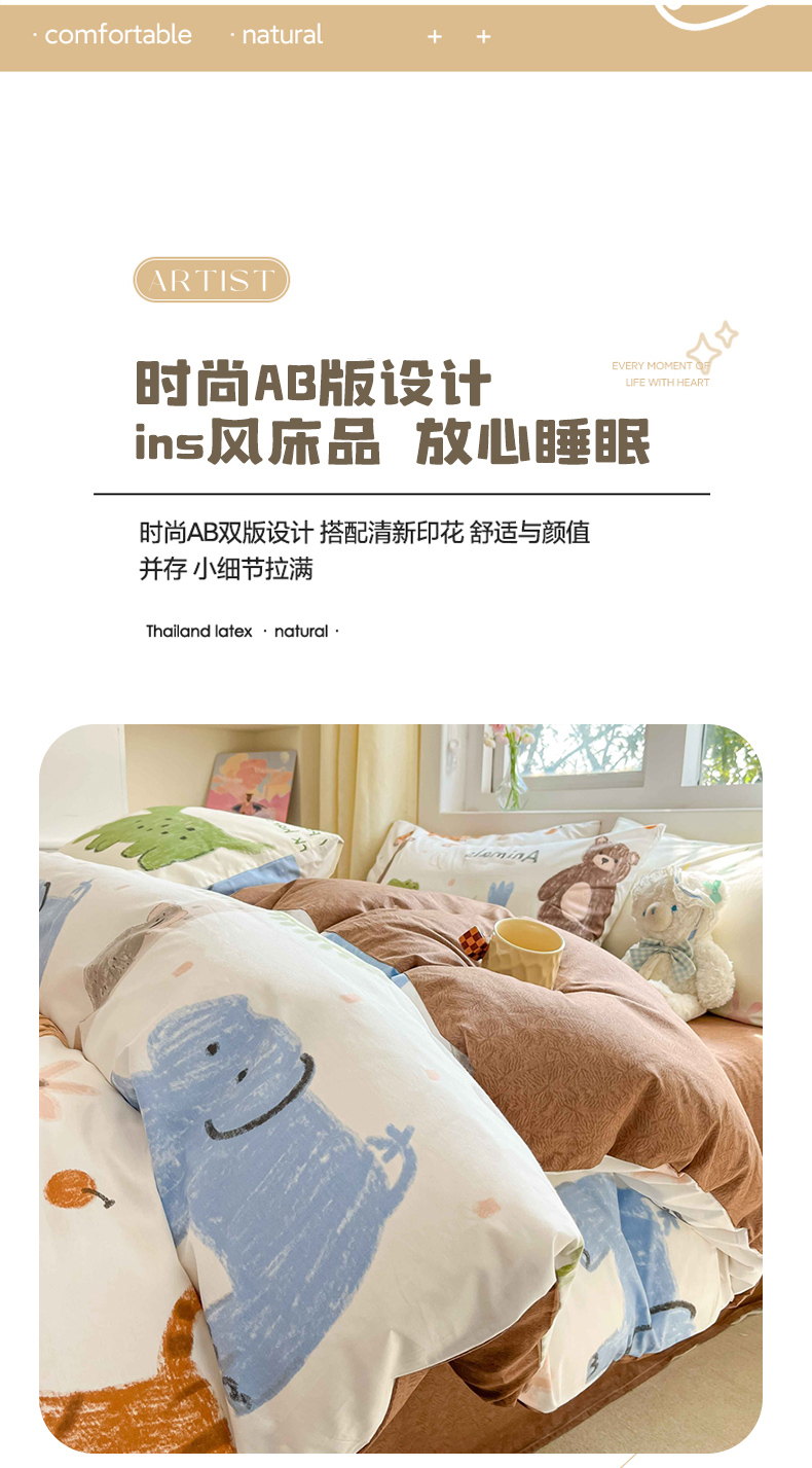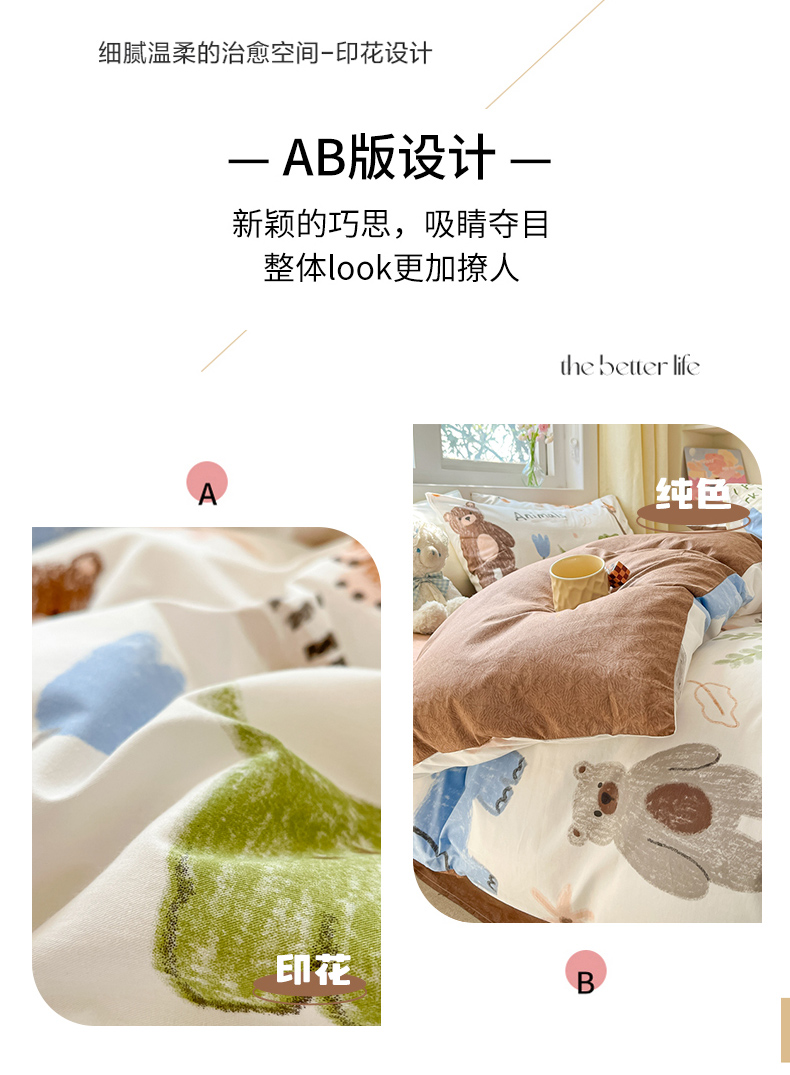 (总)佰亿莱 2024直播新款小清新印花全棉加厚磨毛四件套,爱心格,波浪兔,花萌,花园兔,咖啡熊,萌萌狗,时尚花季,时尚恐龙,田园花,郁金香