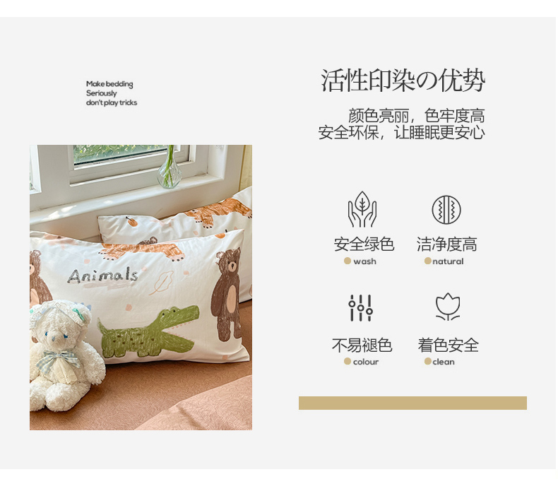 商品名称:佰亿莱 2024新款13372全棉印花四件套-风格二 森林动物日