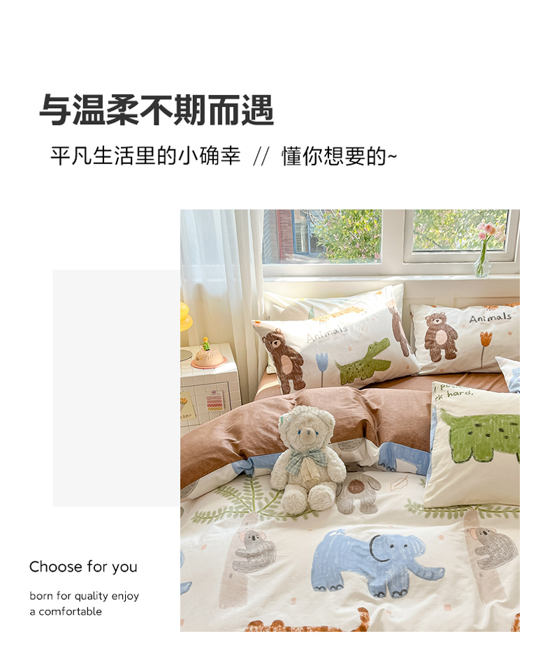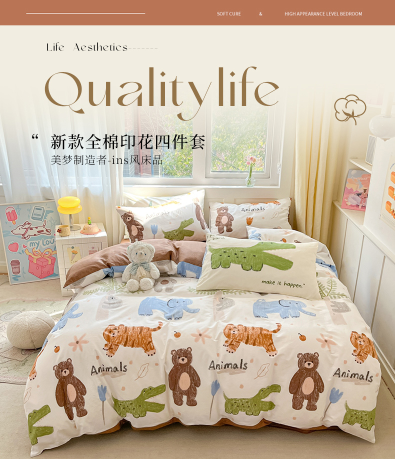 佰亿莱 2024新款13372全棉印花四件套-风格二 森林动物日