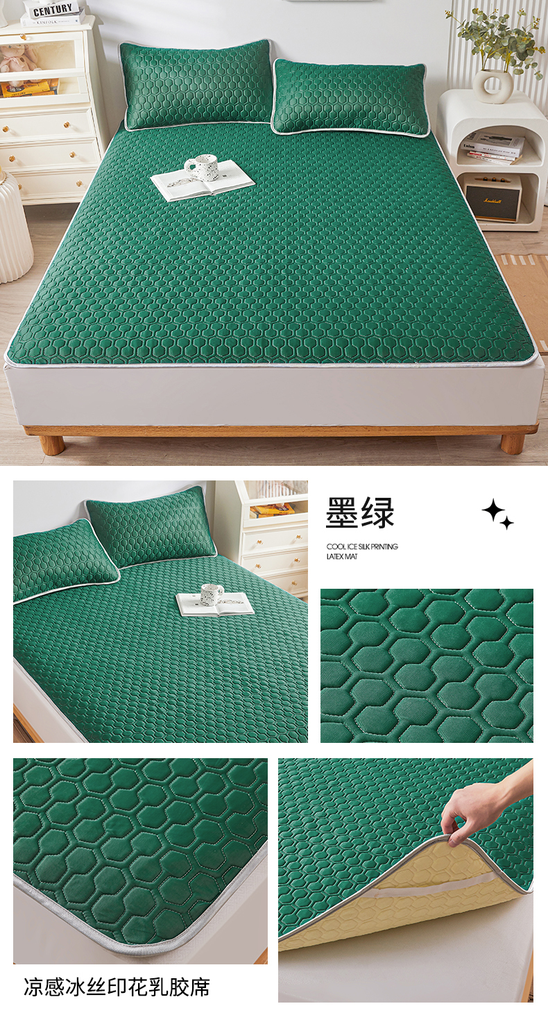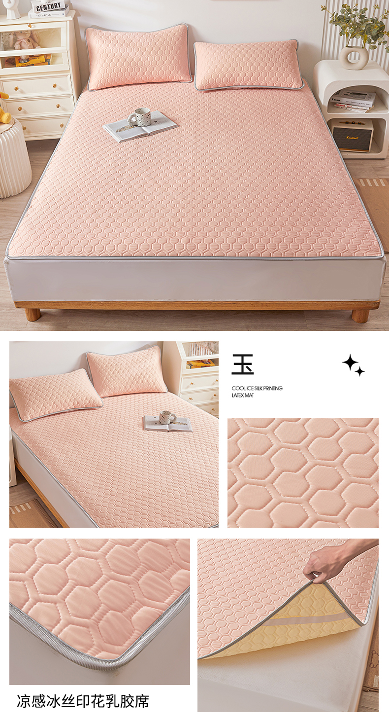 (总)小萌虎 2025新款冰豆豆凉席 床笠款,粉玉,果绿,灰色,咖色,浅蓝,深蓝