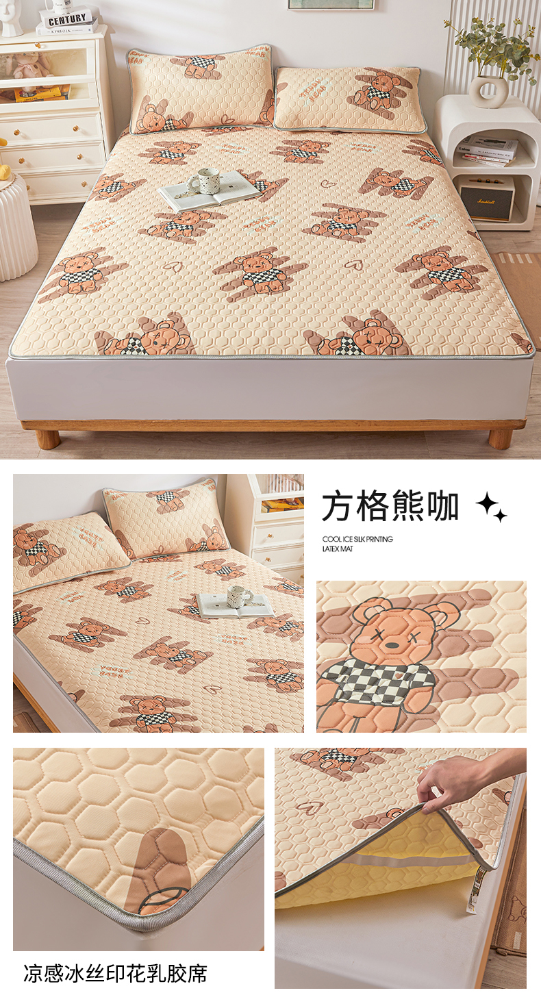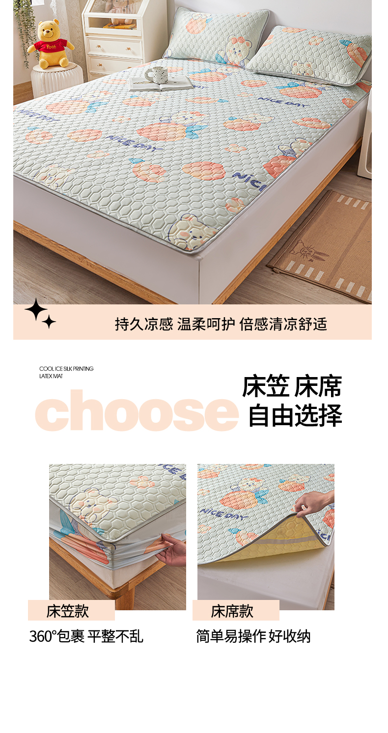 (总)小萌虎 2025新款凉感丝胶质凉席床笠款,爱心,遨游太空,波浪字母,大欧,方格熊咖,方格熊蓝,粉玉,富贵象,高级灰,格调,花草,花海,可爱鸭,恐龙,墨绿,轻奢,水绿,水蜜桃,水墨,水纹,小欧,小兔,小熊,杏韵,幸运条纹