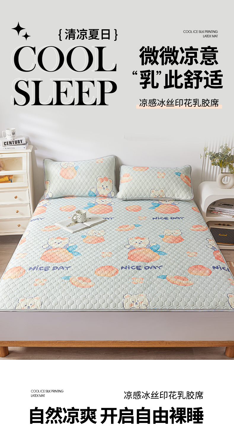 (总)小萌虎 2024新款凉感冰丝印花床单款胶质凉席