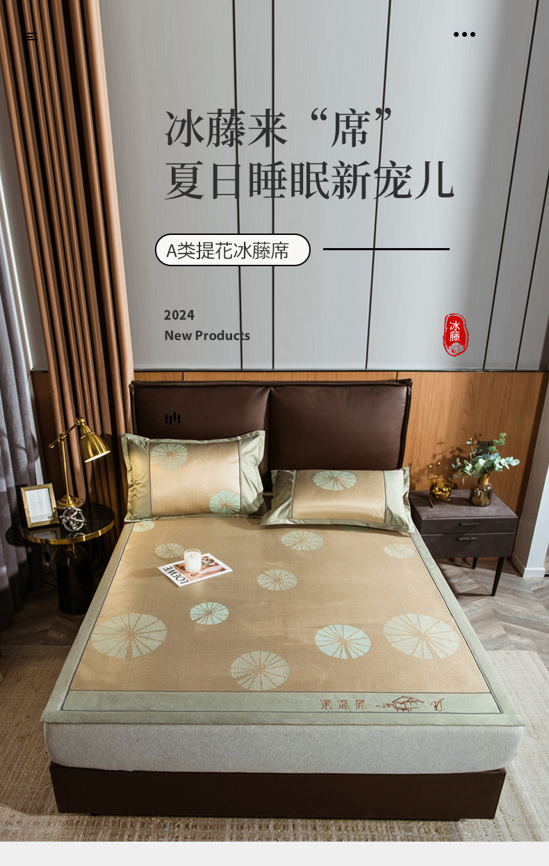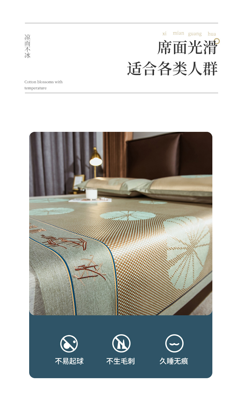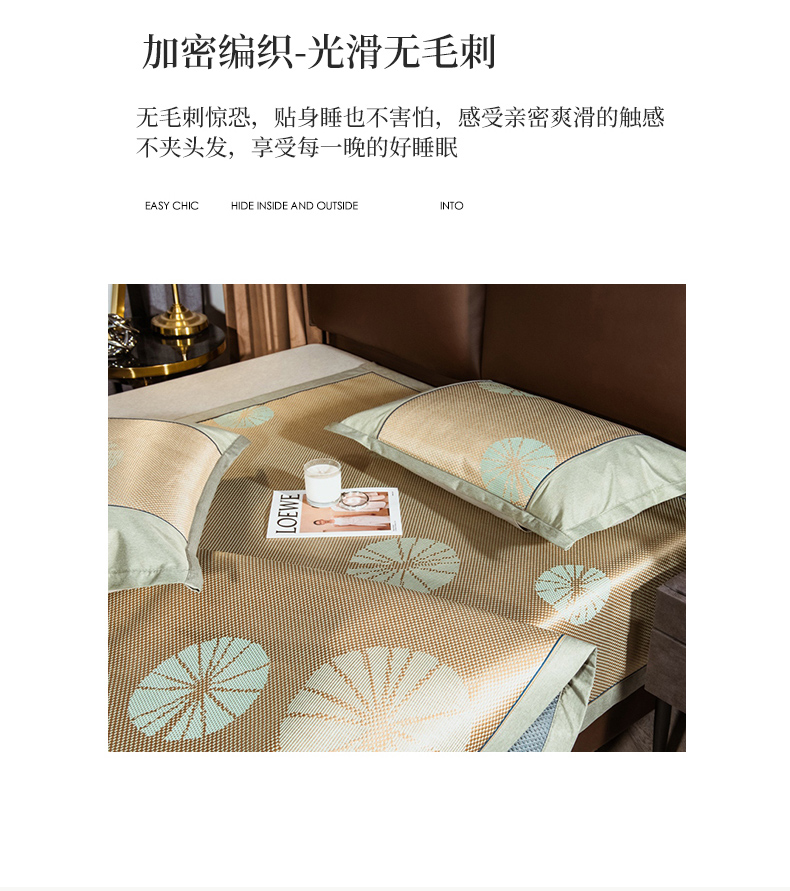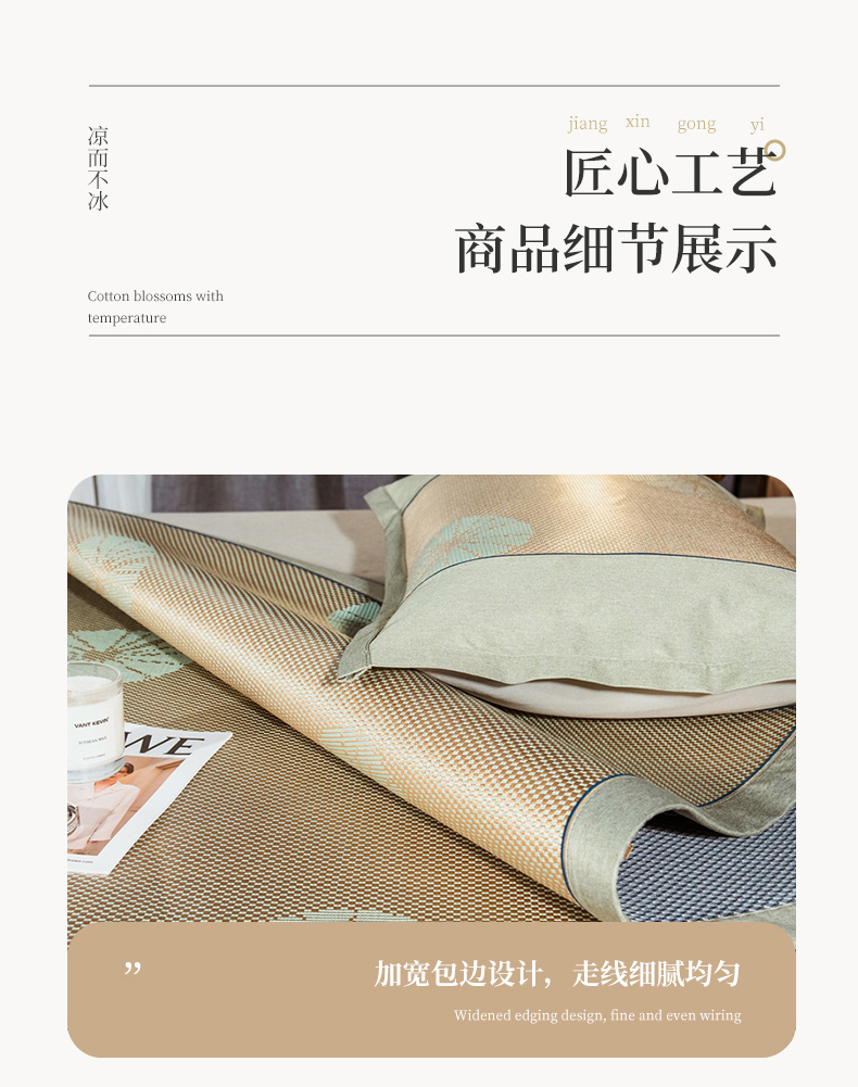 当前位置: 91家纺网 > 商品网购 > 床上用品 > 凉席 > 其他凉席 > 全季家居 2024新款加厚加密宽边刺绣提花冰藤凉席 团扇-娇黄(床席款)