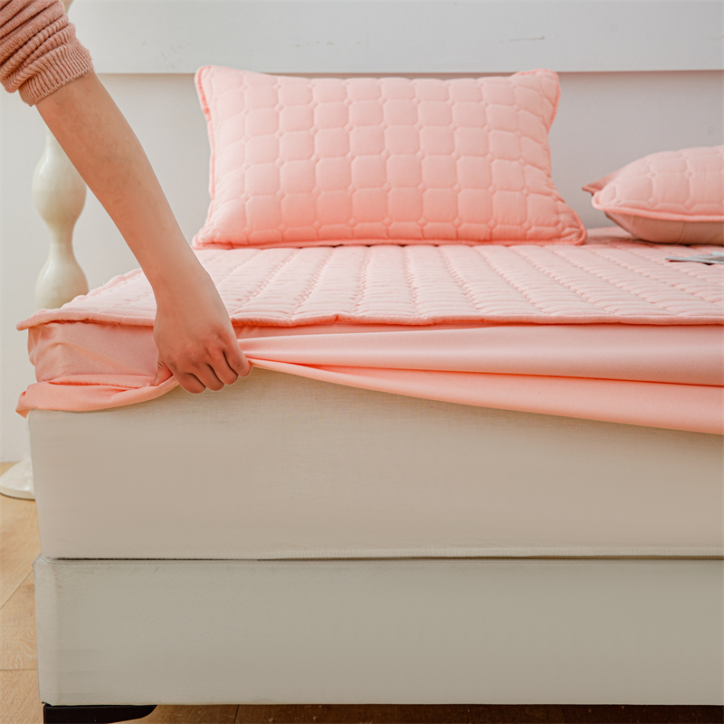 恒尚居 2024新款水洗棉大豆夹棉床笠 粉玉色