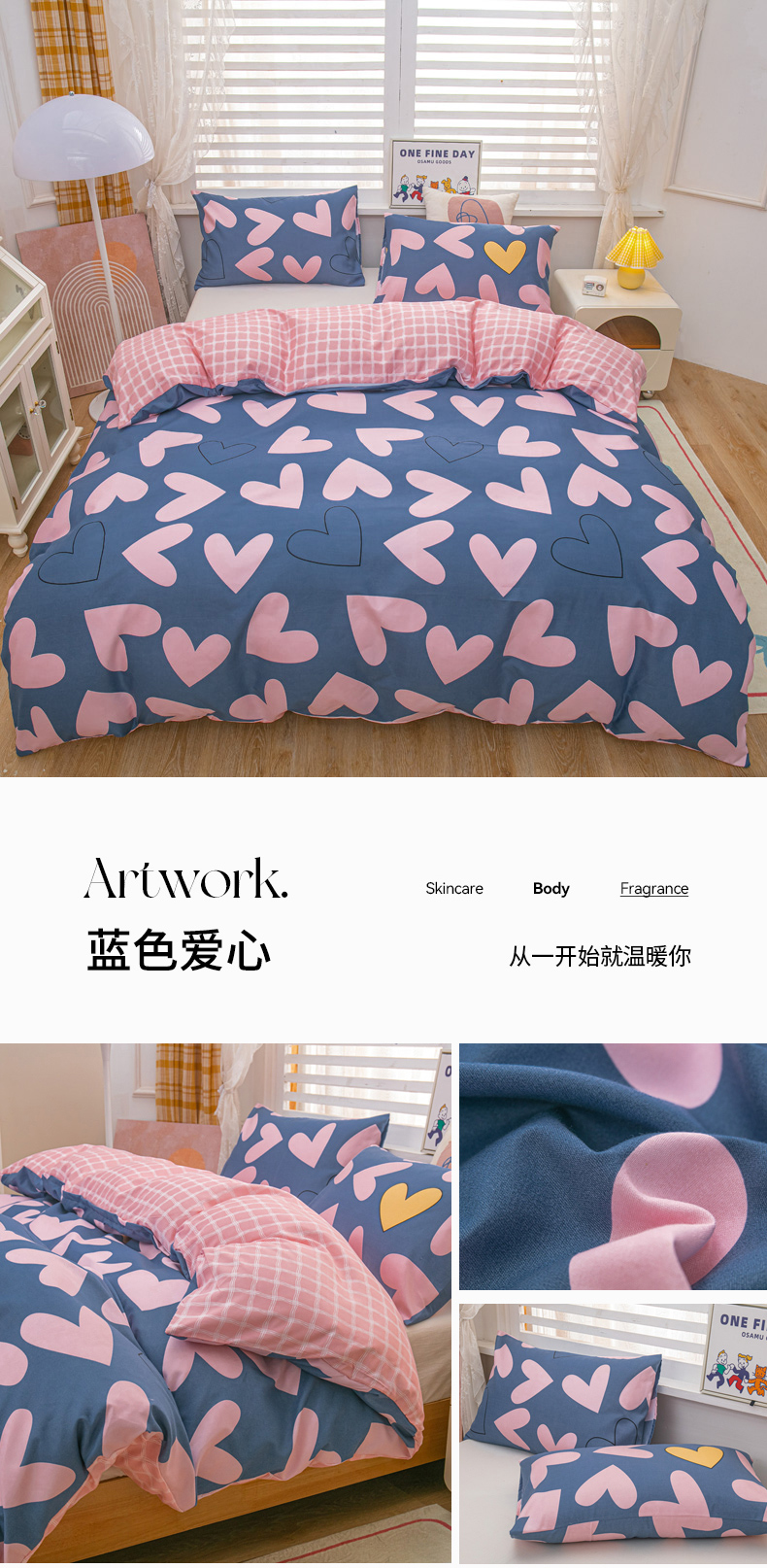 当前位置: 91家纺网 > 商品网购 > 床品套件 > 四件套 > 莎臣豹 2025新款植物羊绒印花四件套 蓝色爱心