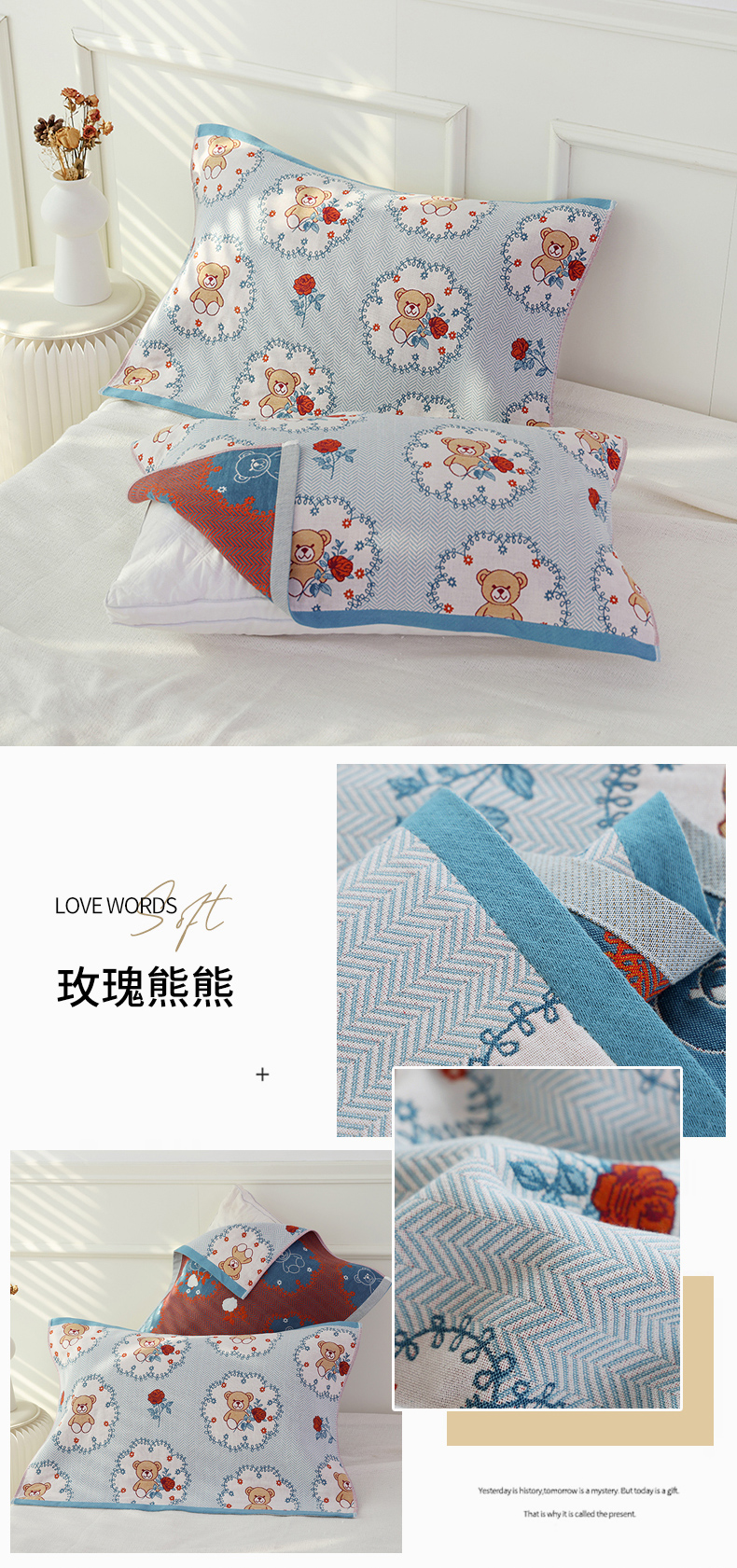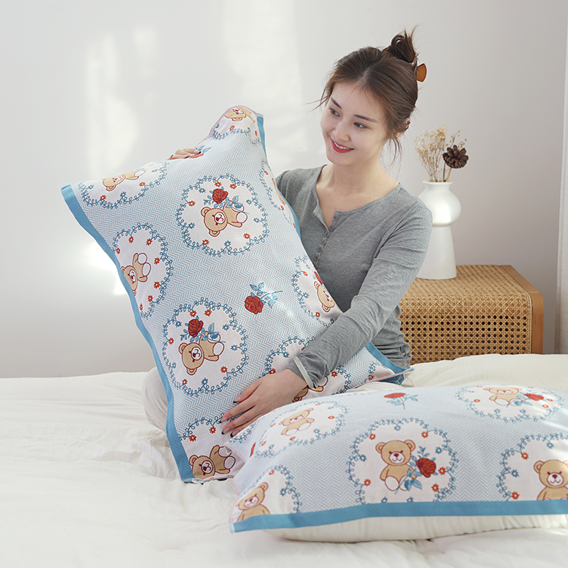 当前位置: 91家纺网 > 商品网购 > 床上用品 > 枕巾 > 朴尔毛巾被2024年新品全棉细纱编织纹AB版透气枕巾 玫瑰熊熊52*78cm